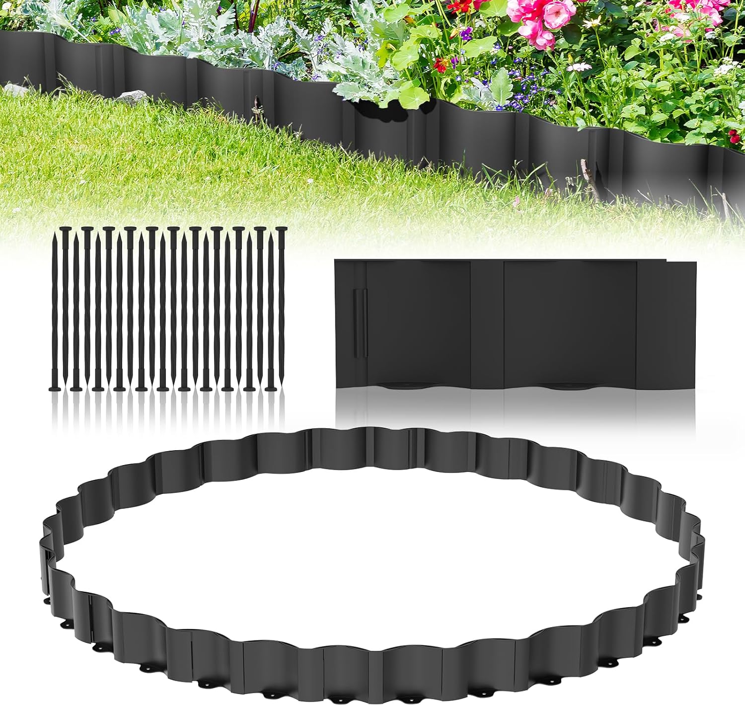 - 🌀 VERSATILE AND NEAT LANDSCAPE SOLUTION: Perfect for defining garden beds, containing mulch and gravel, creating clean pathways, and edging driveways. The bold black finish delivers a neat, manicured look that enhances your curb appeal and keeps your yard organized with minimal maintenance