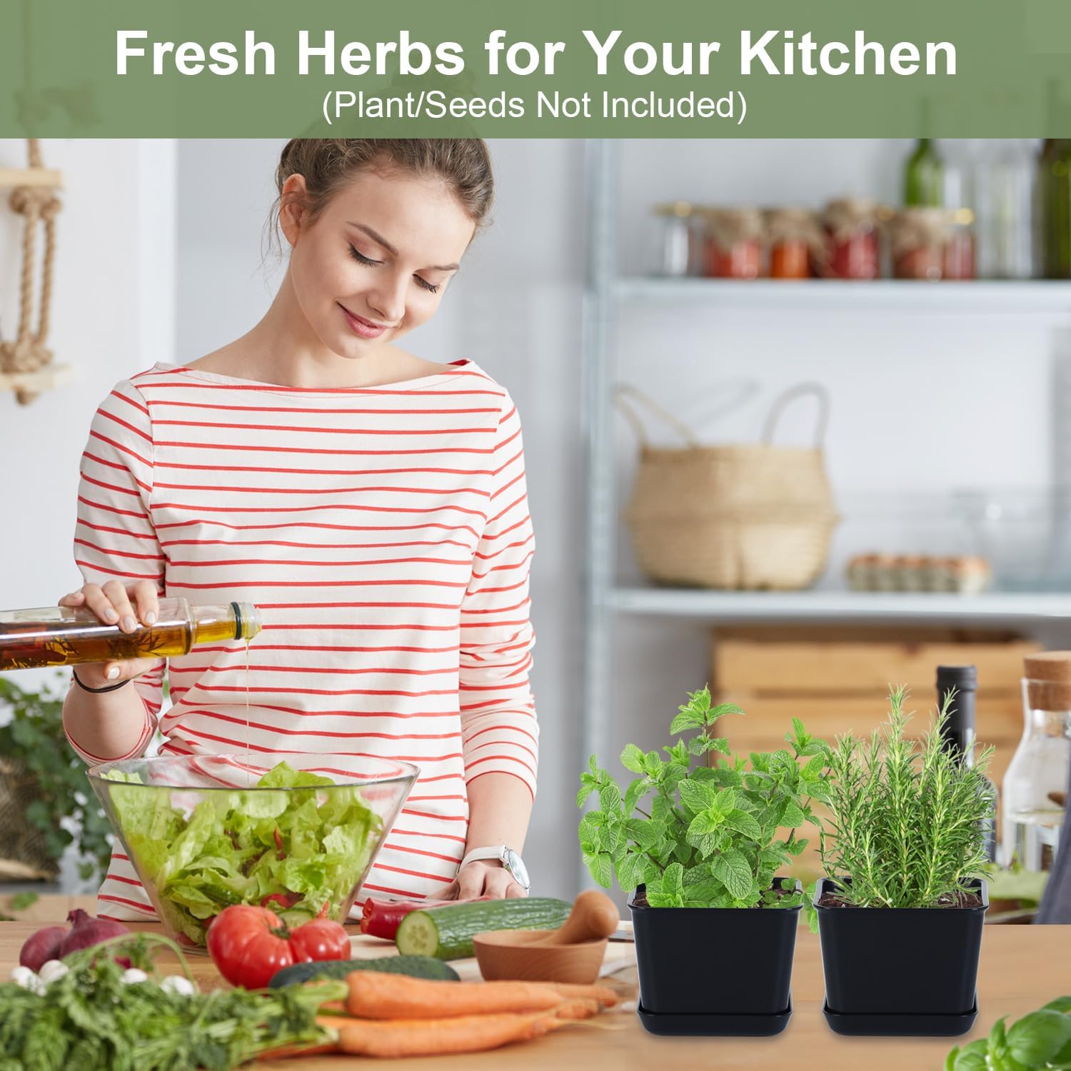 Herb Garden Planter Indoor Kit Pots for Indoor/Outdoor Plants 4 Packs Windowsill Plant Pots with Drainage and Tray, Window Pot for Indoor Plants (Black)