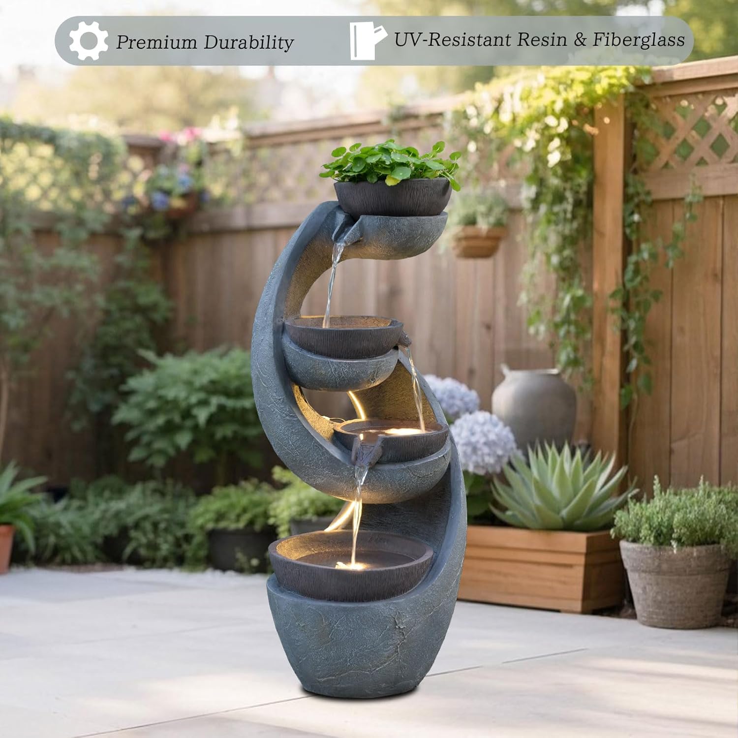 Outdoor Waterfall Fountain with LED Lights and Pump for Garden, Patio, Yard - 43.7 Inch UV-Resistant Freestanding Water Feature
