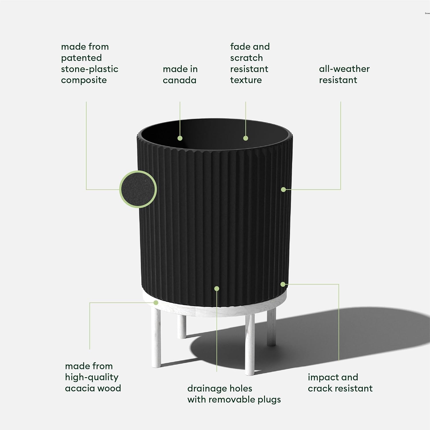 Veradek Demi Series Round Planter w/Stand for Porch/Patio | Durable Plastic-Stone Composite & Wooden Stand | Modern Décor for Tall Plants, Flowers