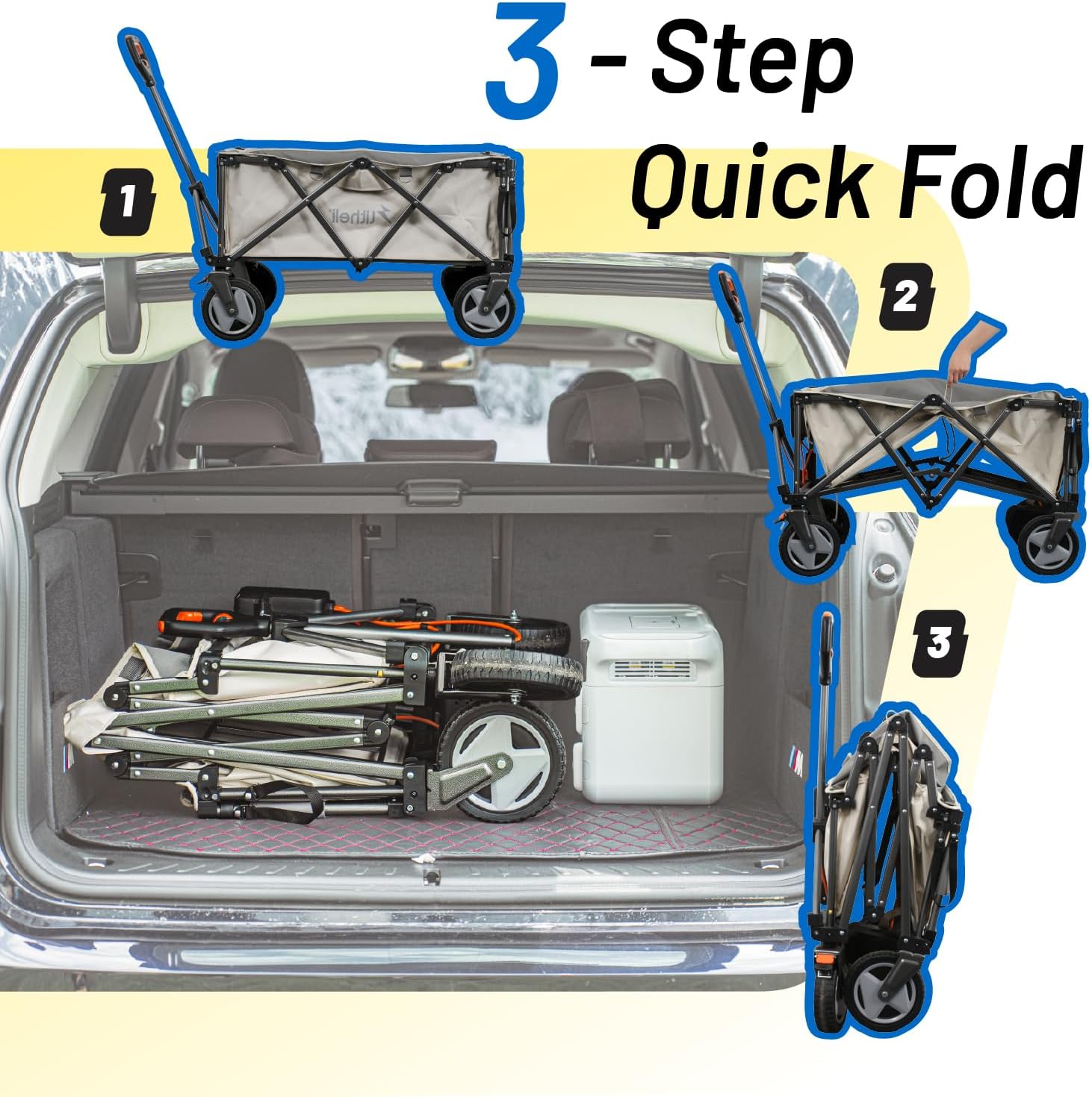 - 【Compact Folding – Store It Anywhere, Clean It in Seconds】 Fold it in seconds with a space-saving 1:4 fold ratio—much smaller than traditional wagons. Easily fits into your car trunk, hallway closet, or garage. The 600D waterproof Oxford liner is removable and washable, ready for messy adventures.