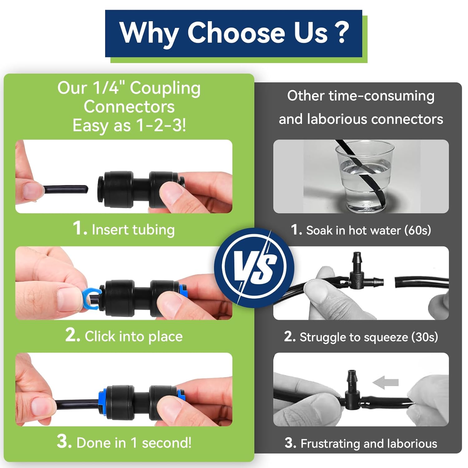 20 Pack 1/4" Drip Universal Straights Fitting Connectors, Quick Connect Universal Drip Irrigation Tubing Coupling Valve, Connector Locking Fitting for Sprinkler or Drip Irrigation System