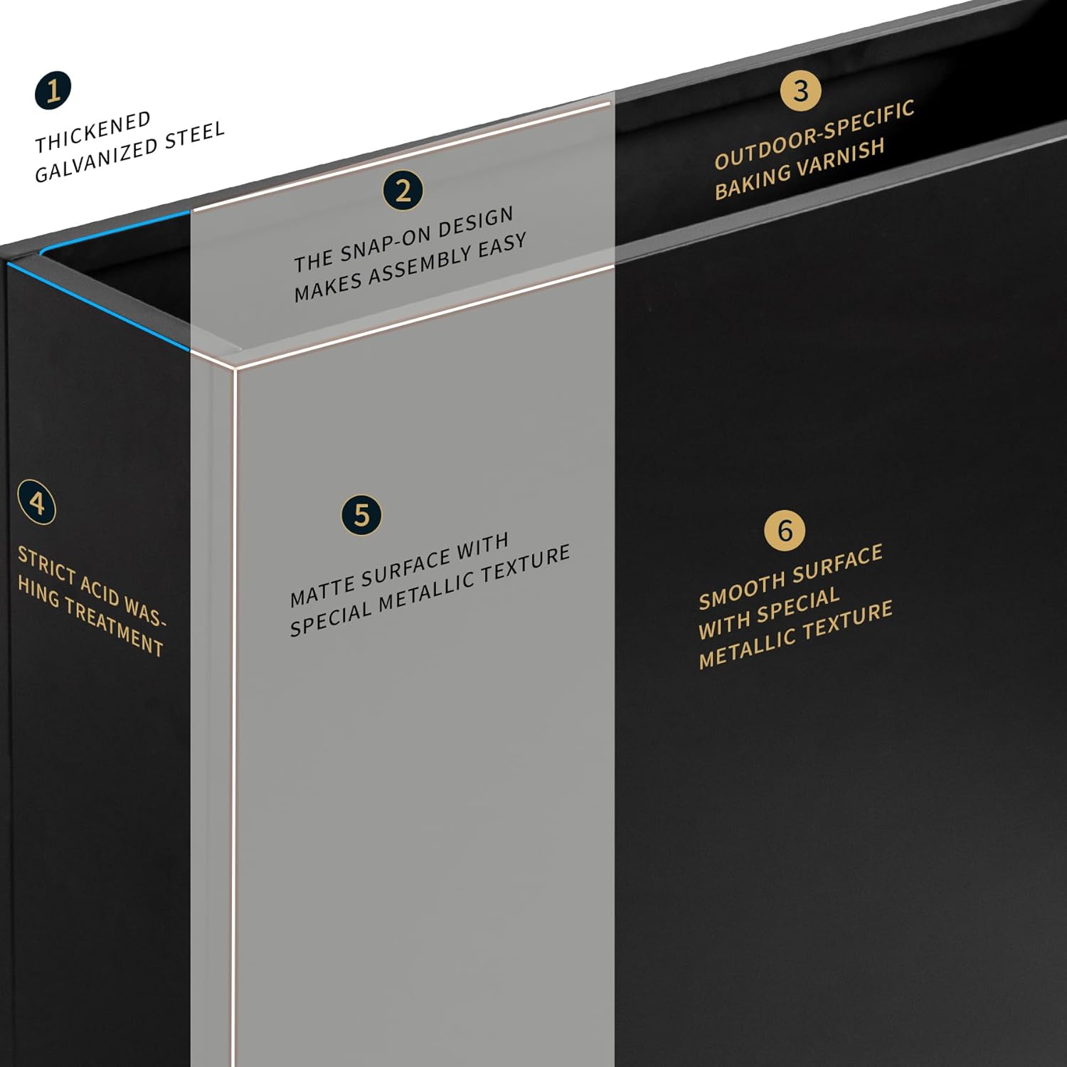- 【Durable & Weatherproof Design】 Crafted from thickened galvanized steel with a specialized outdoor-grade baked coating, this planter resists rust, corrosion, and deformation, ensuring long-lasting performance in harsh weather conditions. Ideal for patios, gardens, and balconies