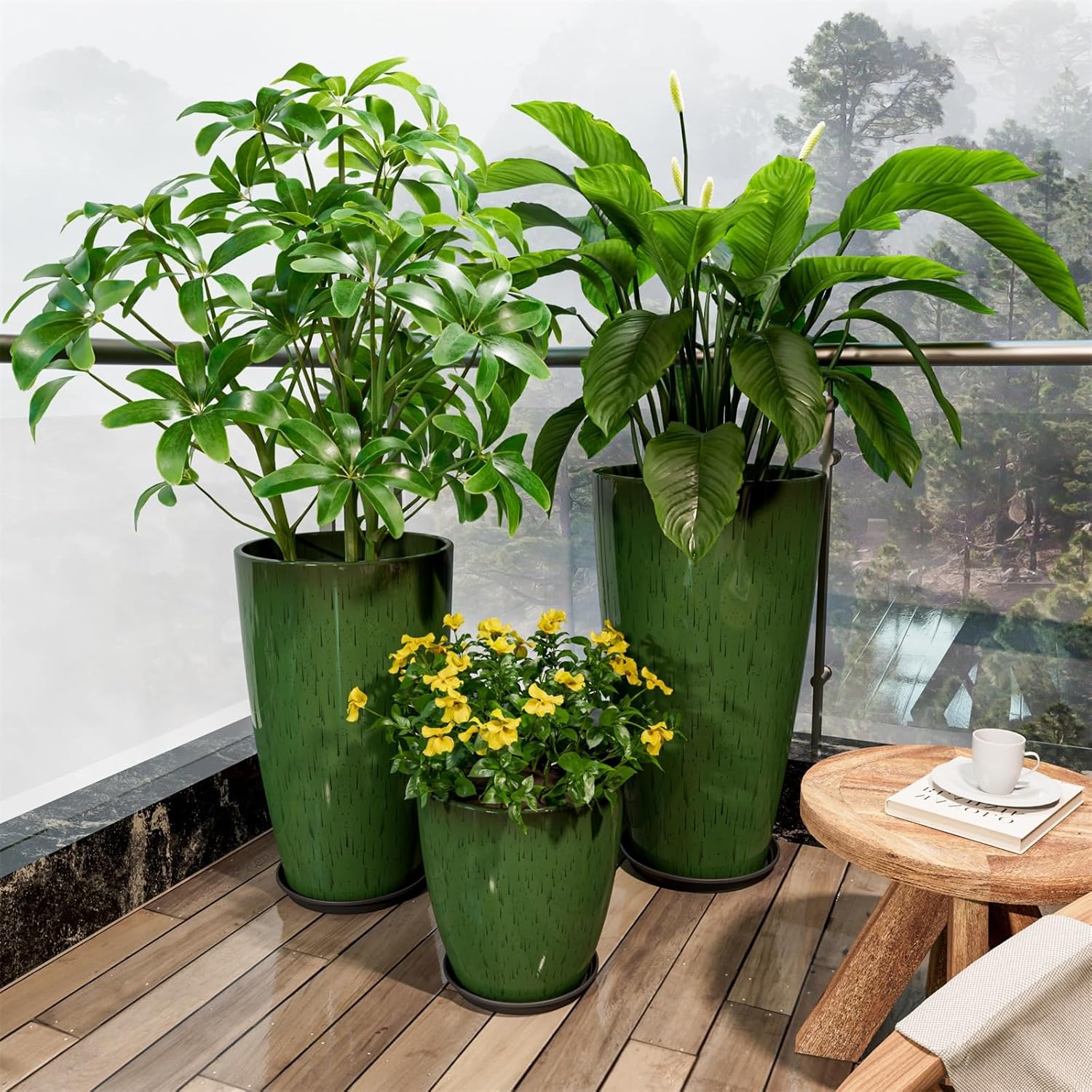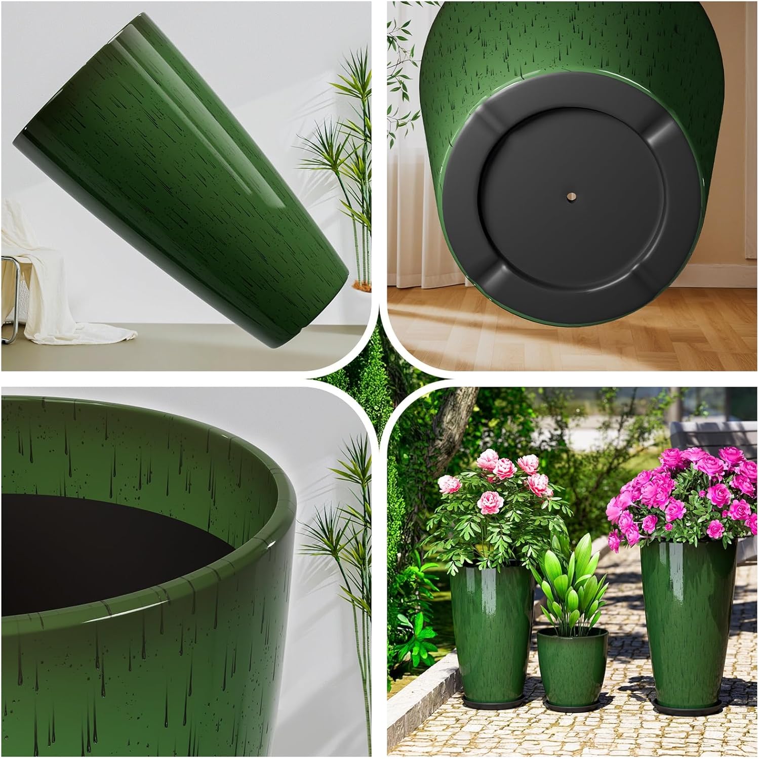- HOME GARDEN DECOR: Set of 3 large planters are large and stable , adding stylish and elegant embellishment to front porch, patio, living room, deck, garden. Allow you to enjoy flower or plant and begin with a beautiful mood