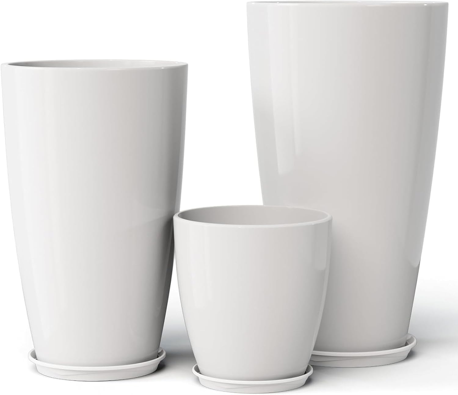 QCQHDU 24,21,11 inch Large Planters with Drainage Hole & Saucer, Set of 3 Plant Pots Tall Planter for Indoor & Outdoor Plants Home Modern Decor