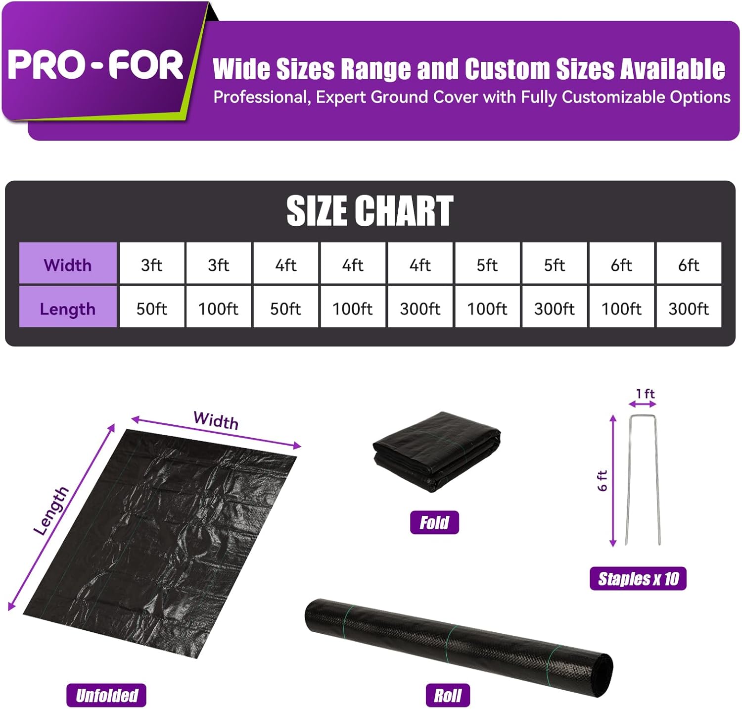 - 【PRO-FOR: Professional Total Weed Block & Erosion Control】 Heavier than standard garden fabric – protects investments season after season. Combines erosion control + soil health in one thick weed barrier fabric. Save 50+ weeding hours yearly. Backed by industrial-grade durability and 24/7 PRO-FOR support for 100% satisfaction