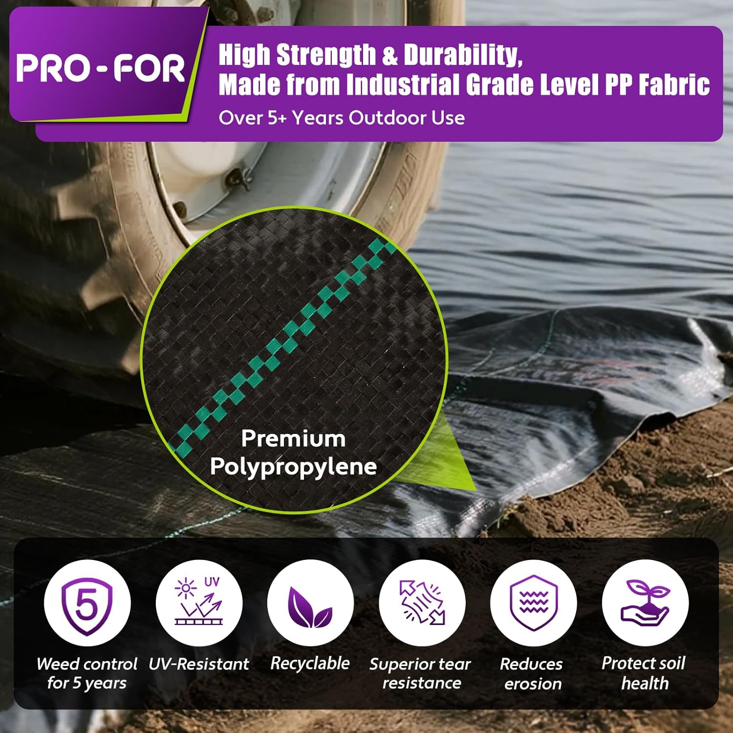 - 【PRO-FOR: Professional Total Weed Block & Erosion Control】 Heavier than standard garden fabric – protects investments season after season. Combines erosion control + soil health in one thick weed barrier fabric. Save 50+ weeding hours yearly. Backed by industrial-grade durability and 24/7 PRO-FOR support for 100% satisfaction.