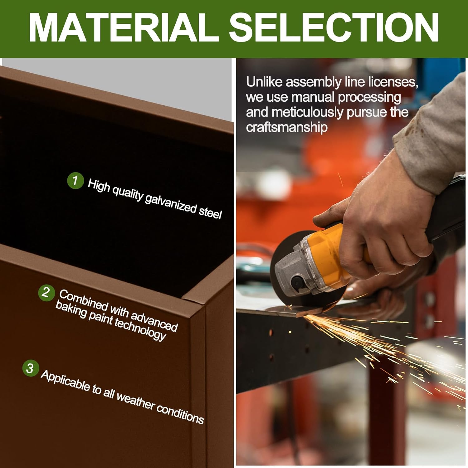 - 【ROBUST METAL CONSTRUCTION】Crafted from sturdy galvanized steel, this spacious planter boasts exceptional durability, ensuring it withstands outdoor elements without rusting or fading. Its weather-resistant design makes it suitable for year-round use in temperatures ranging from freezing cold to scorching heat, ideal for enhancing both indoor and outdoor settings.