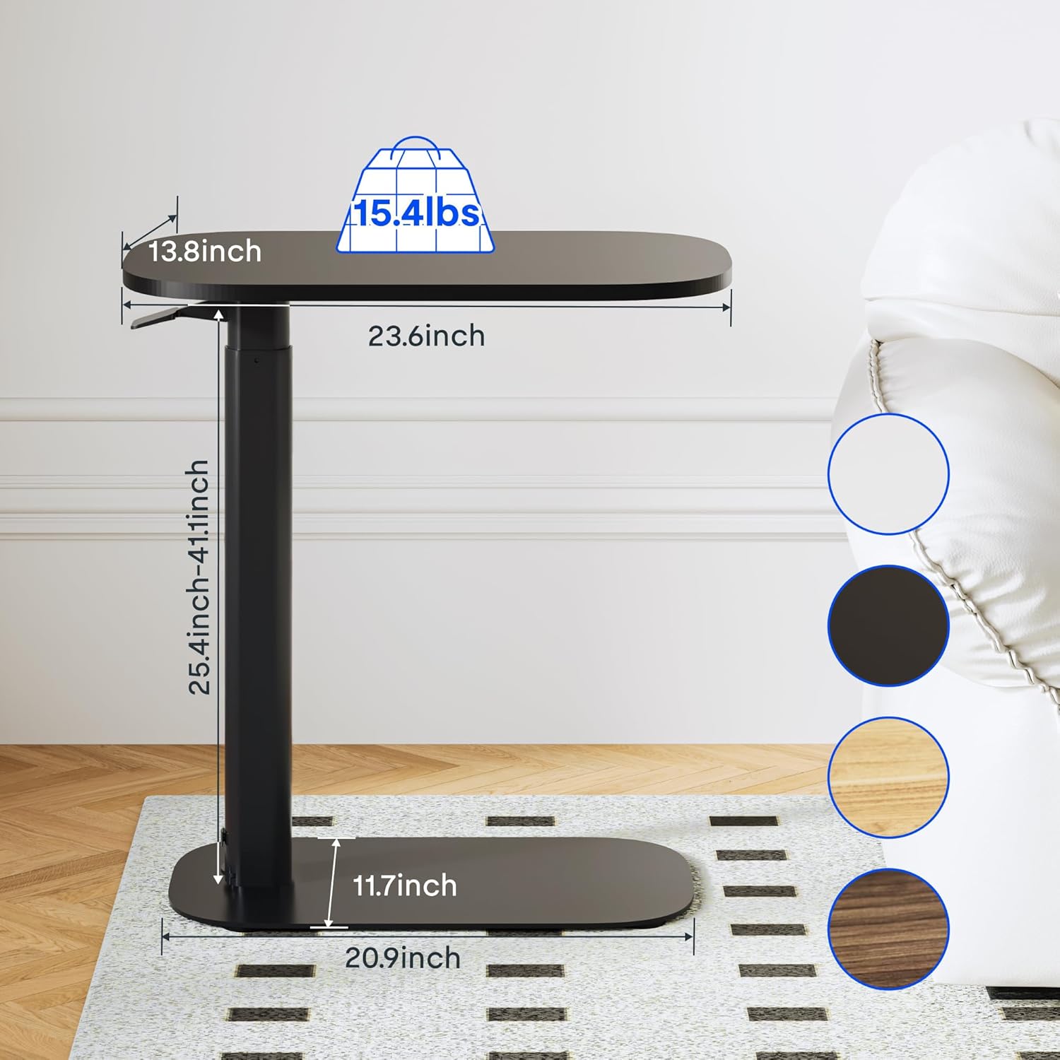 - One-Touch Height Adjustment with Gas Spring Lift (25.4"-41.6"):Effortlessly customize your C-Shaped Table from bedside to standing desk heights using the pneumatic lift system. The gas spring mechanism enables smooth one-handed operation – perfect as an overbed table for patients, an adjustable laptop desk, or a sofa-side snack table – all without bending or straining.