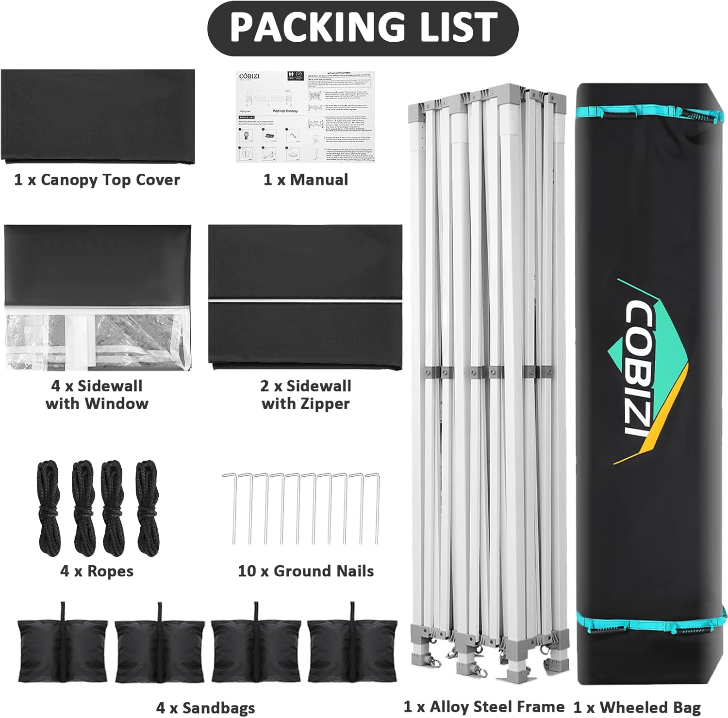 COBIZI 13x26 Pop Up Canopy with 6 Sidewall,Heavy Duty UPF 50+ All Season Wind Waterproof Commercial Outdoor Wedding Party Tents for Parties Canopy Gazebo with Roller Bag(13 x 26 ft Black)