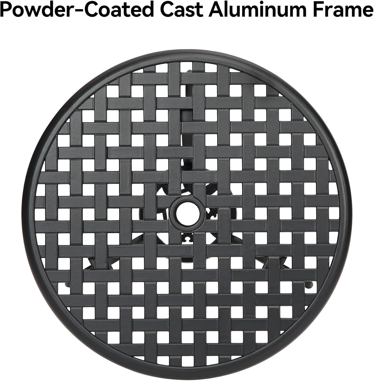 - ăDurable & Weather-Resistant Constructionă: Constructed from high-quality cast aluminum, this Round patio bistro table is designed to withstand harsh outdoor conditions. It offers exceptional durability, weather resistance, and rust preventionâensuring long-lasting performance with minimal maintenance required.