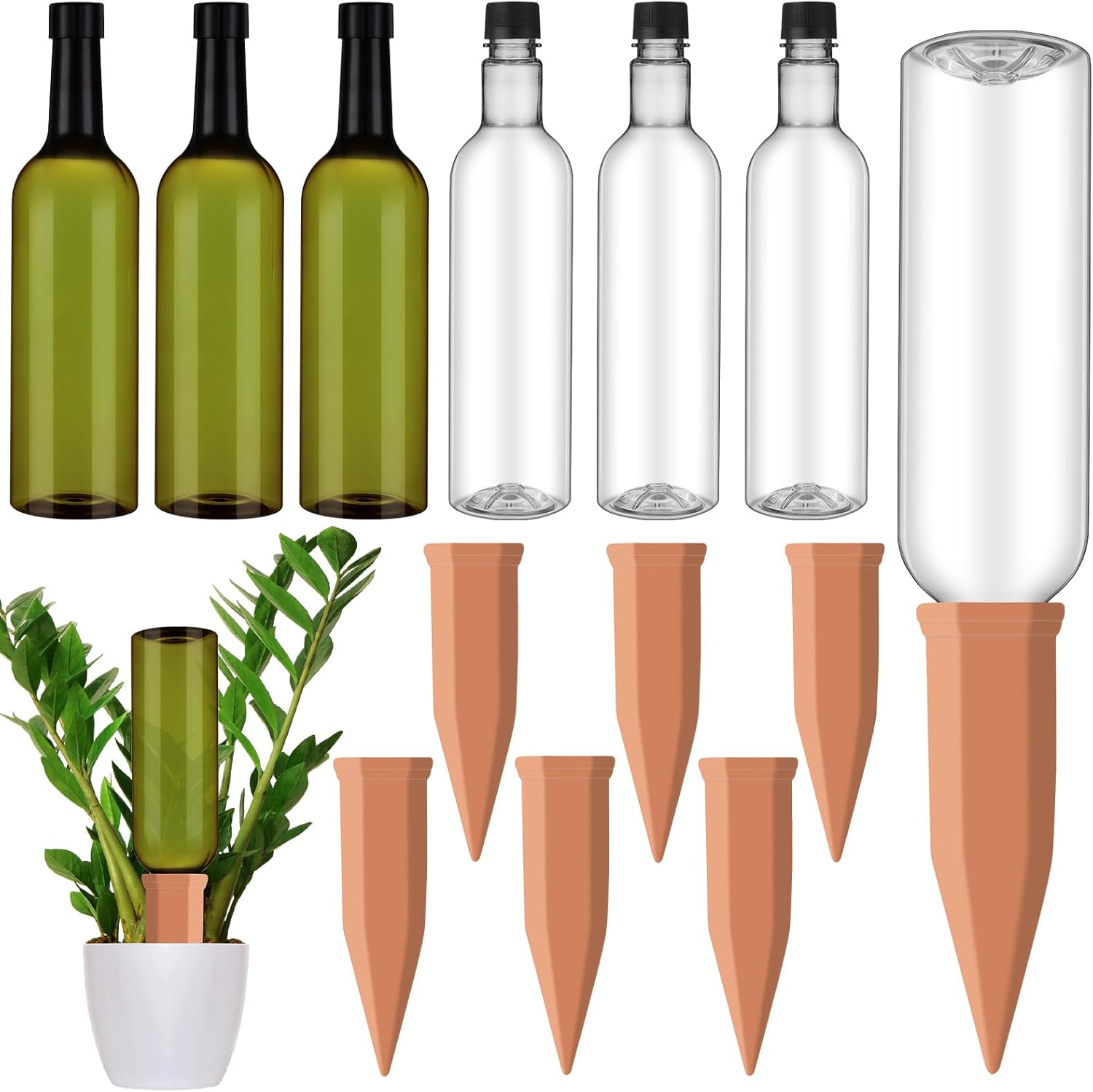- Comprehensive Set: with our plant watering devices, we offer a comprehensive solution to your gardening needs; The set includes 6 terracotta self watering spikes and 6 clear and dark green translucent plastic bottles(3 each color); This is sufficient to meet your holiday usage and daily replacement needs; It's an ideal choice for those who travel while seeking to ensure their plants are appropriately watered