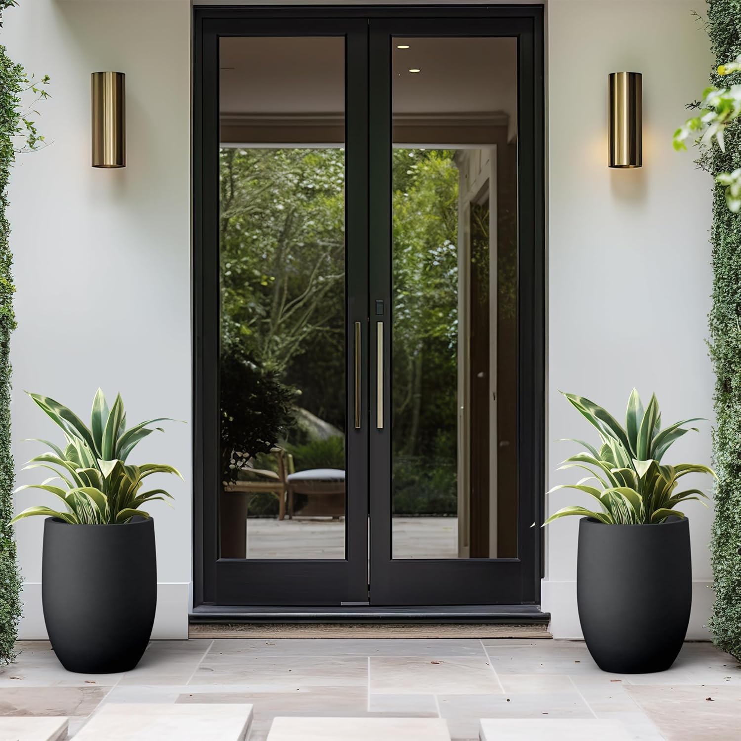 Kante 16.5 Inch Tall Concrete Planter, Large Indoor Outdoor Plant Pot with Drainage, Smooth Black Finish with Warm Brown Interior, Ideal for Porch, Home, Garden, Patio