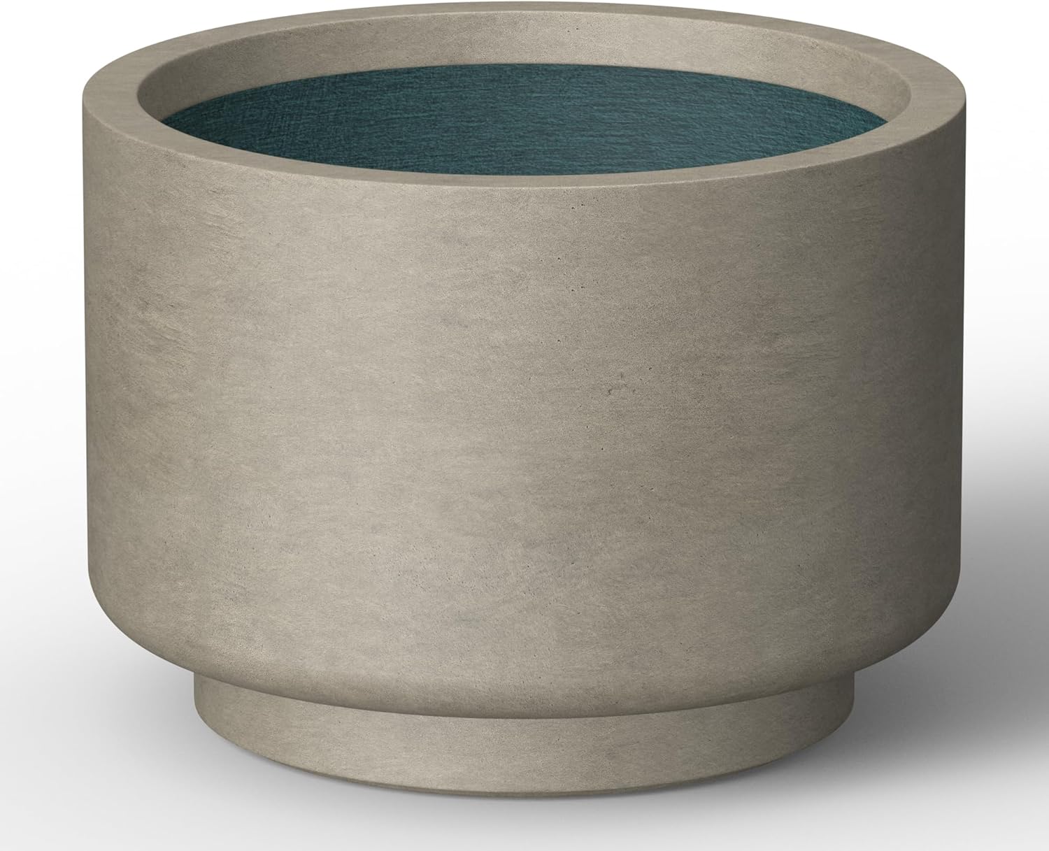 Kante 12.6 Inch Dia Concrete Planter, Round Pedestal Design Garden Pot for Indoor Outdoor Plants, Modern Flower Pot with Drainage Hole, Weathered Concrete Finish with Forest Green Interior