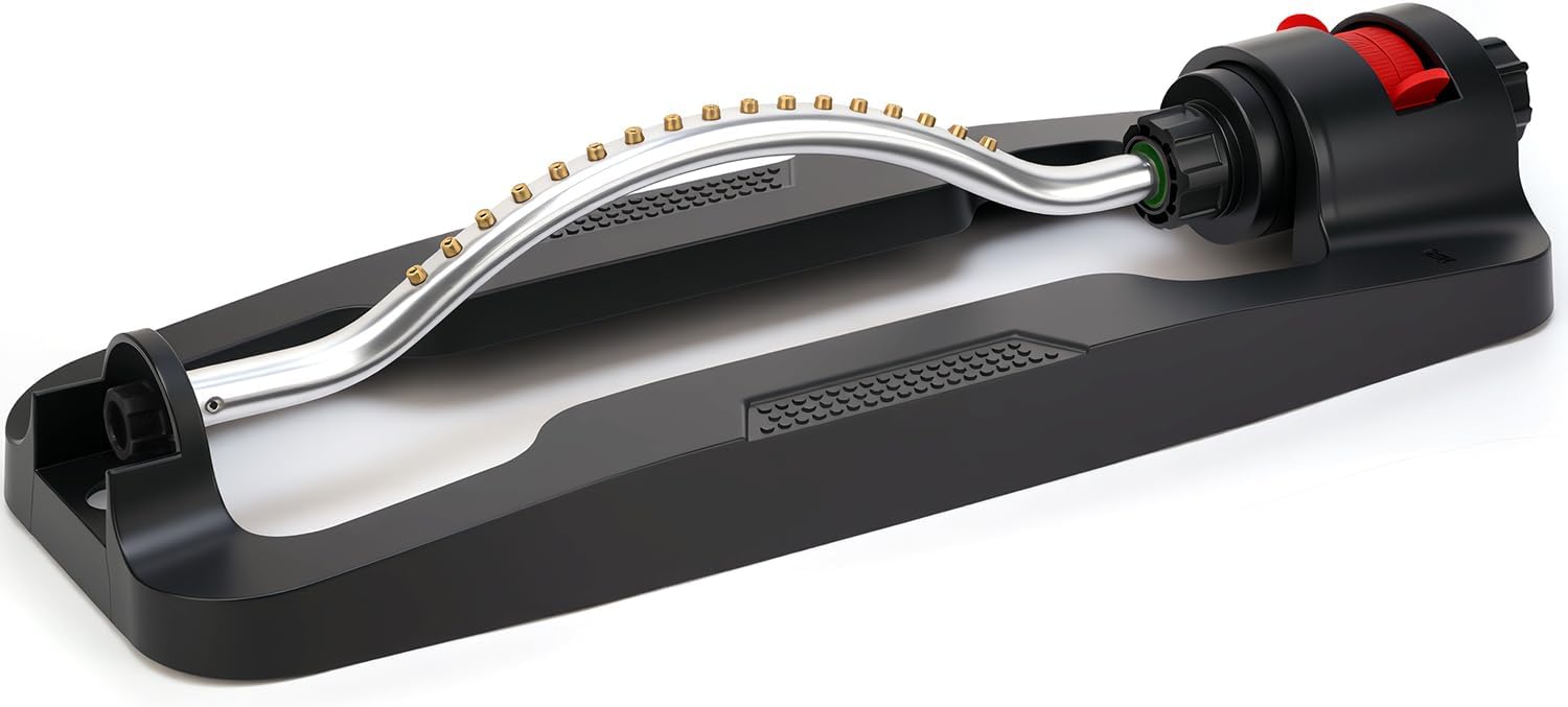 Lawn Sprinkler,Garden Oscillating Sprinkler,17 Brass Nozzles,Heavy Weight Thick and Sturdy Plastics Base with Metal Blocks,Up to 3600 Square Feet,Stable and Durable.