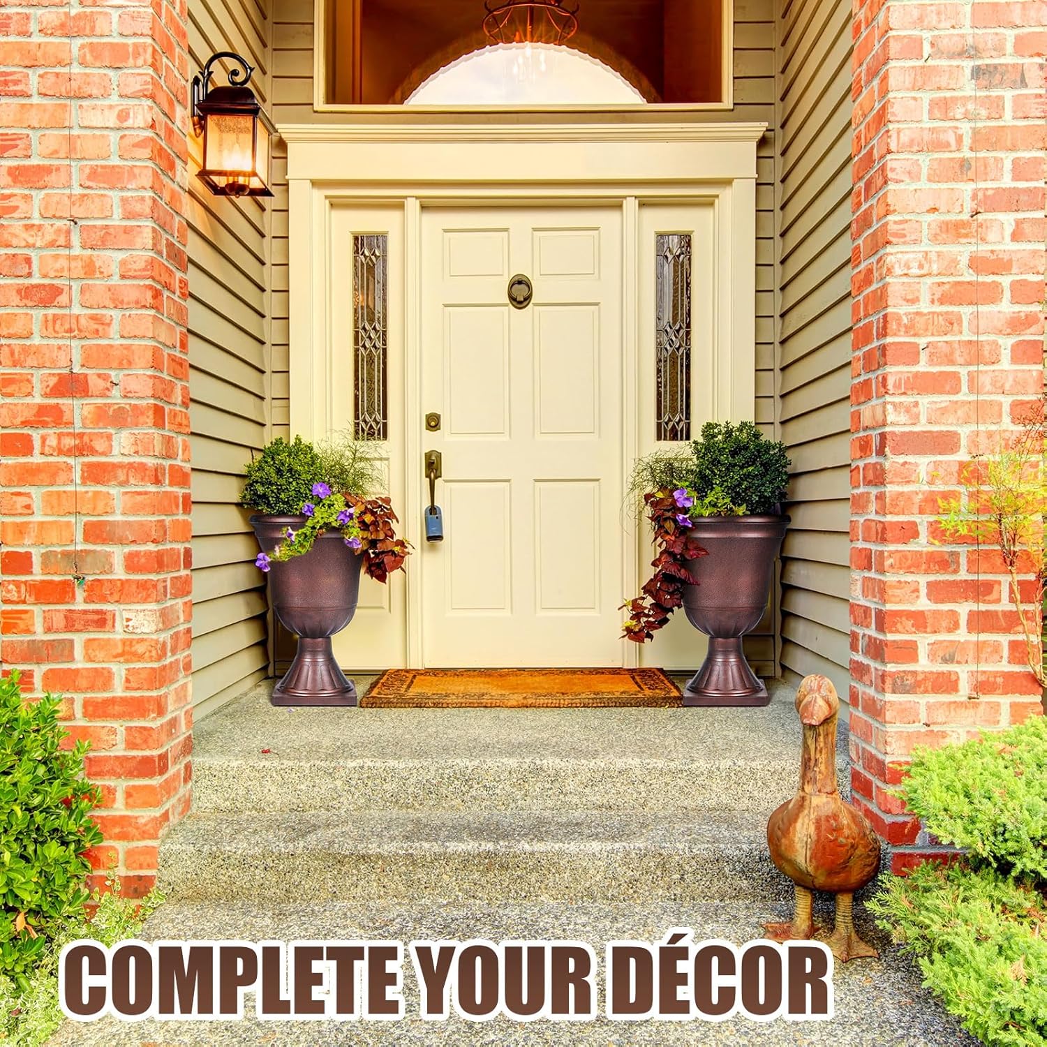 Dandat 4 Pack Large Outdoor Urn Planter 22 inch Tall Plastic Planter for Front Proch Classic Vase Decorative Garden Pot for Indoor Outdoor Door Patio Deck Decor (Vintage Copper)
