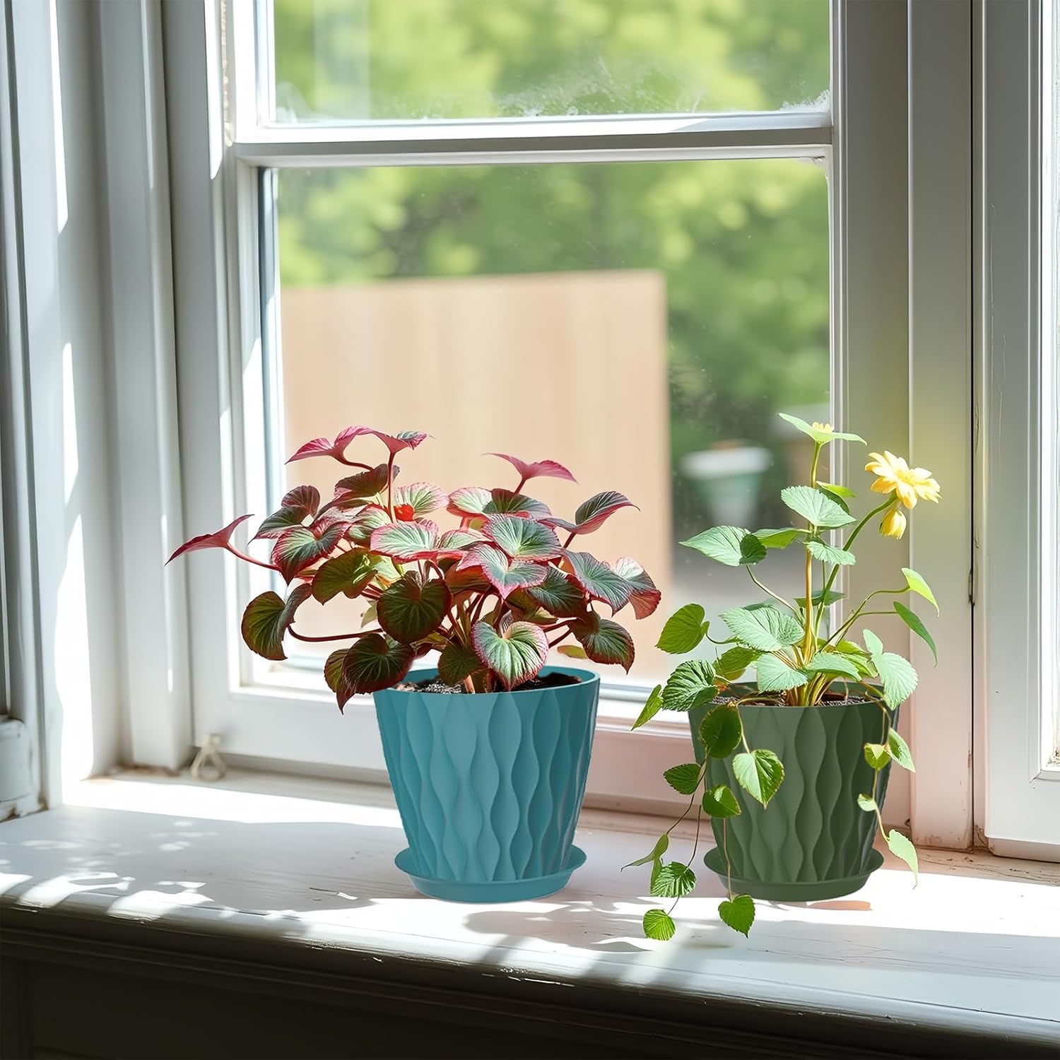 - 💧 Optimal Plant Health with Drainage & Saucers: Each pot features essential drainage holes to prevent root rot, paired with matching saucers to catch excess water and protect your surfaces. Enjoy worry-free watering!