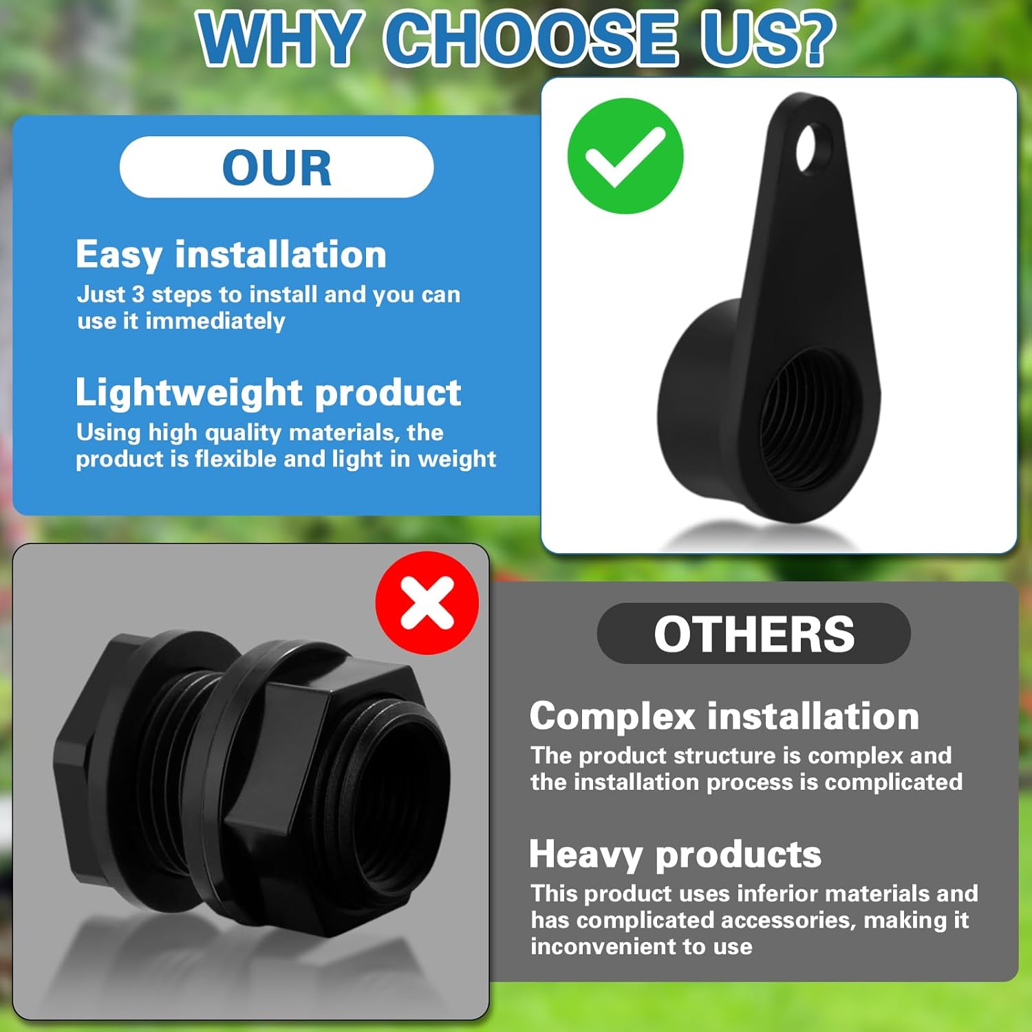 - Green and Water-Saving: The rainwater collection system formed by rain barrel spigot can collect rainwater and use it to irrigate the garden, reducing water costs