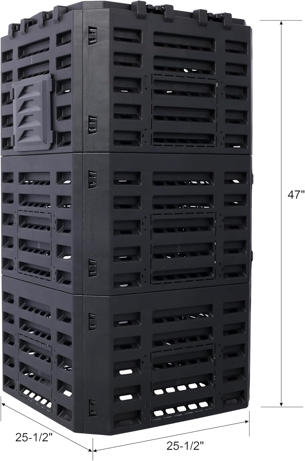 - Create Fertile Soil Effortlessly: With our lightweight outdoor compost box, turn kitchen waste into fertile soil effortlessly. This Black Garden Composter Bin is your perfect partner in sustainable gardening, helping you enjoying the fruits of your labor.