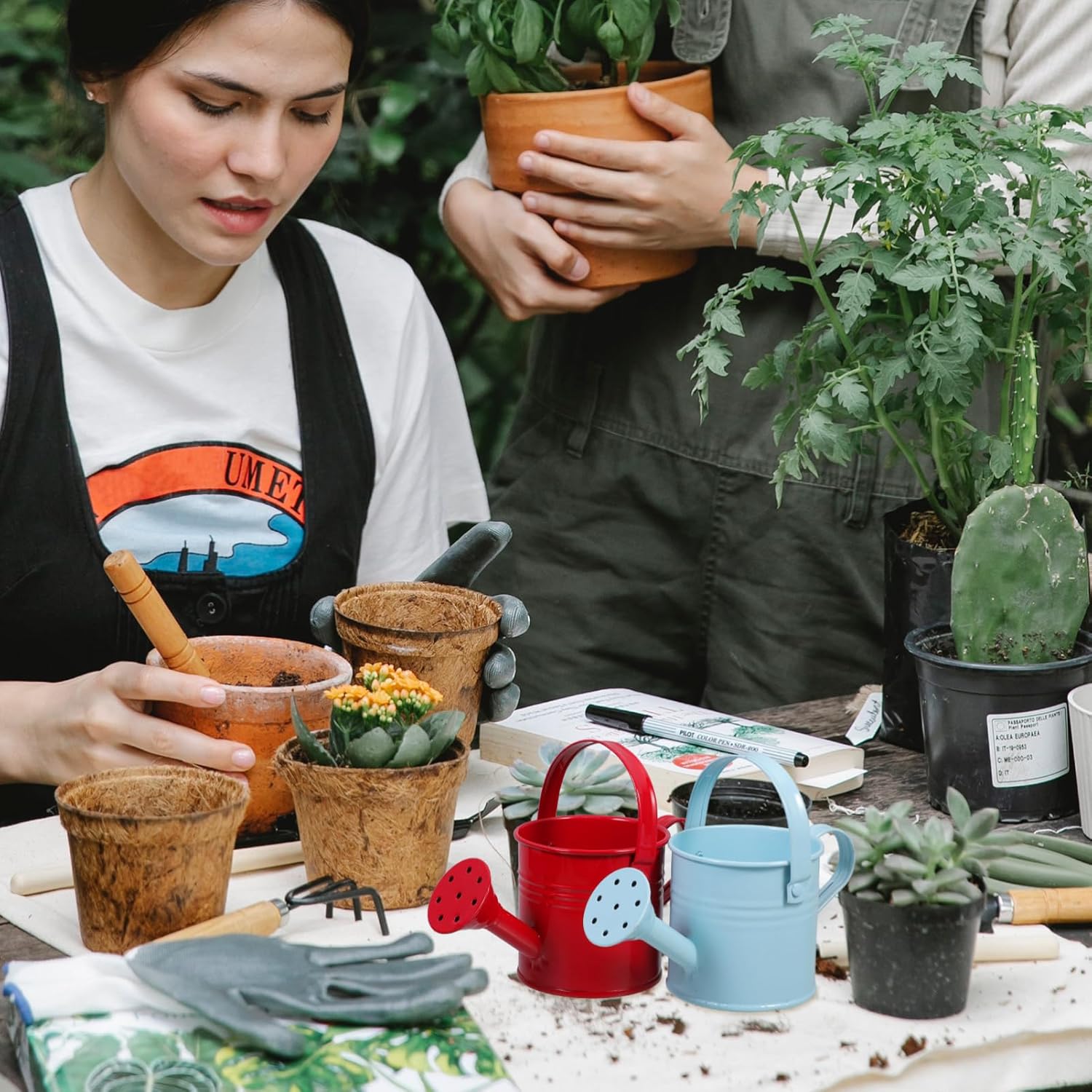 2pcs Kids Metal Watering Can for Indoor Plants, Durable Iron Sprinkling Kettle, Portable Small Water Can for Garden Home Plants, Red and Light Blue, 6.69 x 2.75 x 2.75 Inch