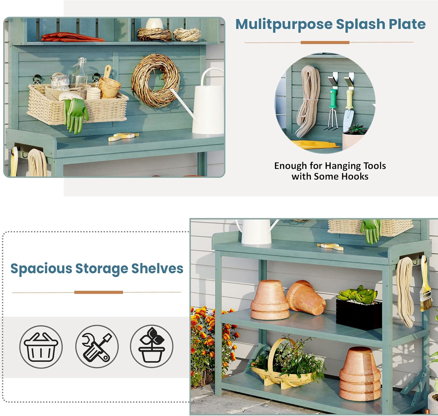 - Spacious & Durable Workstation: Enjoy a generous 46.8" x 18.5" fir wood tabletop, perfect for potting, repotting, and organizing your gardening essentials. Built to withstand outdoor use for years to come!