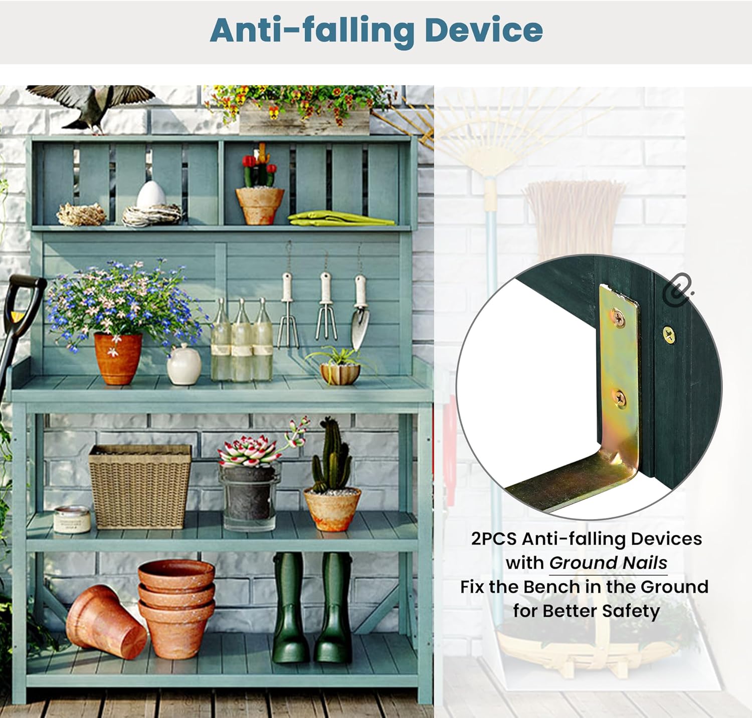 - Enhanced Stability & Safety: Equipped with anti-falling devices and ground nails to secure the potting bench, providing a stable and safe workspace, even on uneven ground.