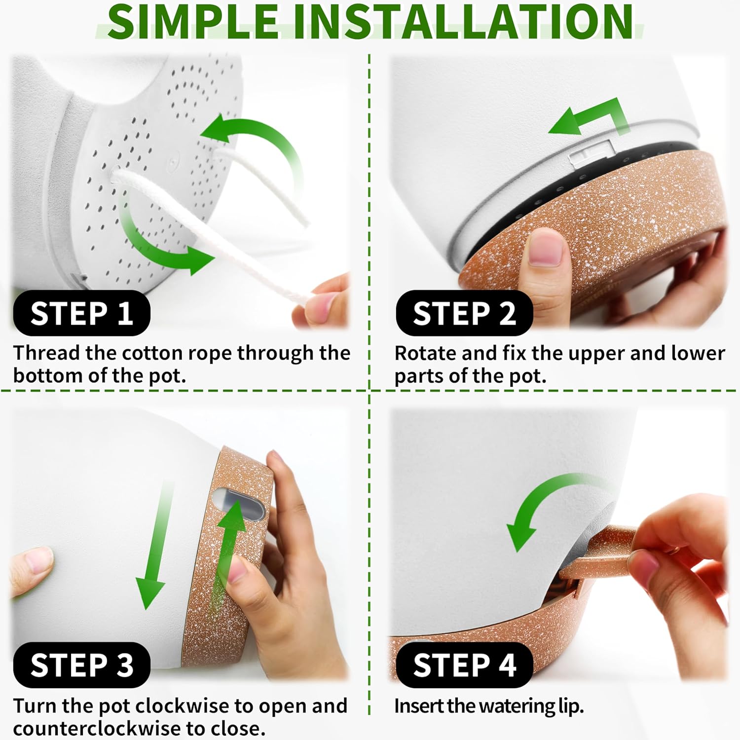 - 【Self-Watering Design】The super large water storage tank and cotton core can provide automatic watering for most plants for 14 days, and the perfect self watering design allows you to travel and vacation with peace of mind.