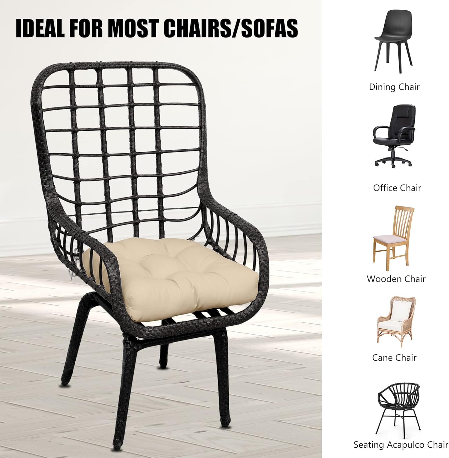 - Non-slip Design: With Full-length attached ties, you can conveniently secure the indoor-outdoor chair cushion to your seat. This multi-purpose cushion is perfect for kitchen dining table chairs, office chairs, outdoor chairs, and any other hard chair that needs additional comfort