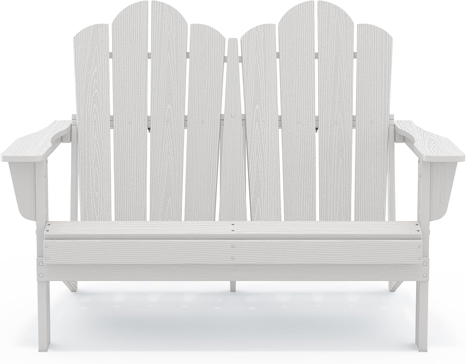 - [Easy to Maintain] Keeping your 2-person outdoor adirondack bench chair looking new is a breeze. Simply wipe it down with a cloth or rinse with water to remove dirt and grime. The low-maintenance HDPE material ensures your bench stays clean and beautiful season after season.