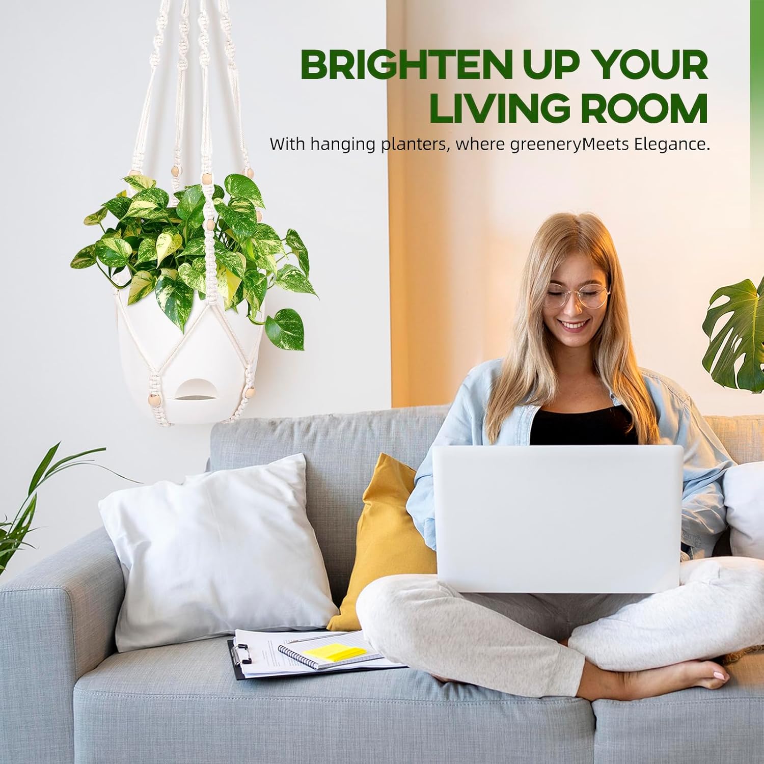 2-Pack 7.1-Inch Self-Watering Hanging Planters for Indoor & Outdoor Plants,34Inch Macrame Hanger Plant Pots Indoor with Drainage,Small Hanging Planters & Baskets,With Two Sets of Hooks(Pure white)