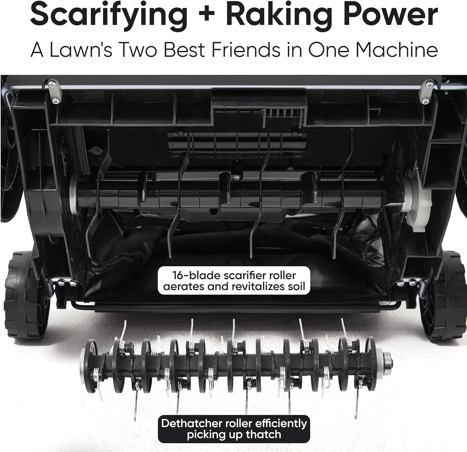 13-Inch 2-in-1 Electric Dethatcher and Scarifier Lawn Dethatcher with 8-Gallon Removable Thatch Collection Bag, 4-Position Depth Adjustment, 12 Amp, Quick-Fold, Keeps Lawn Healthy
