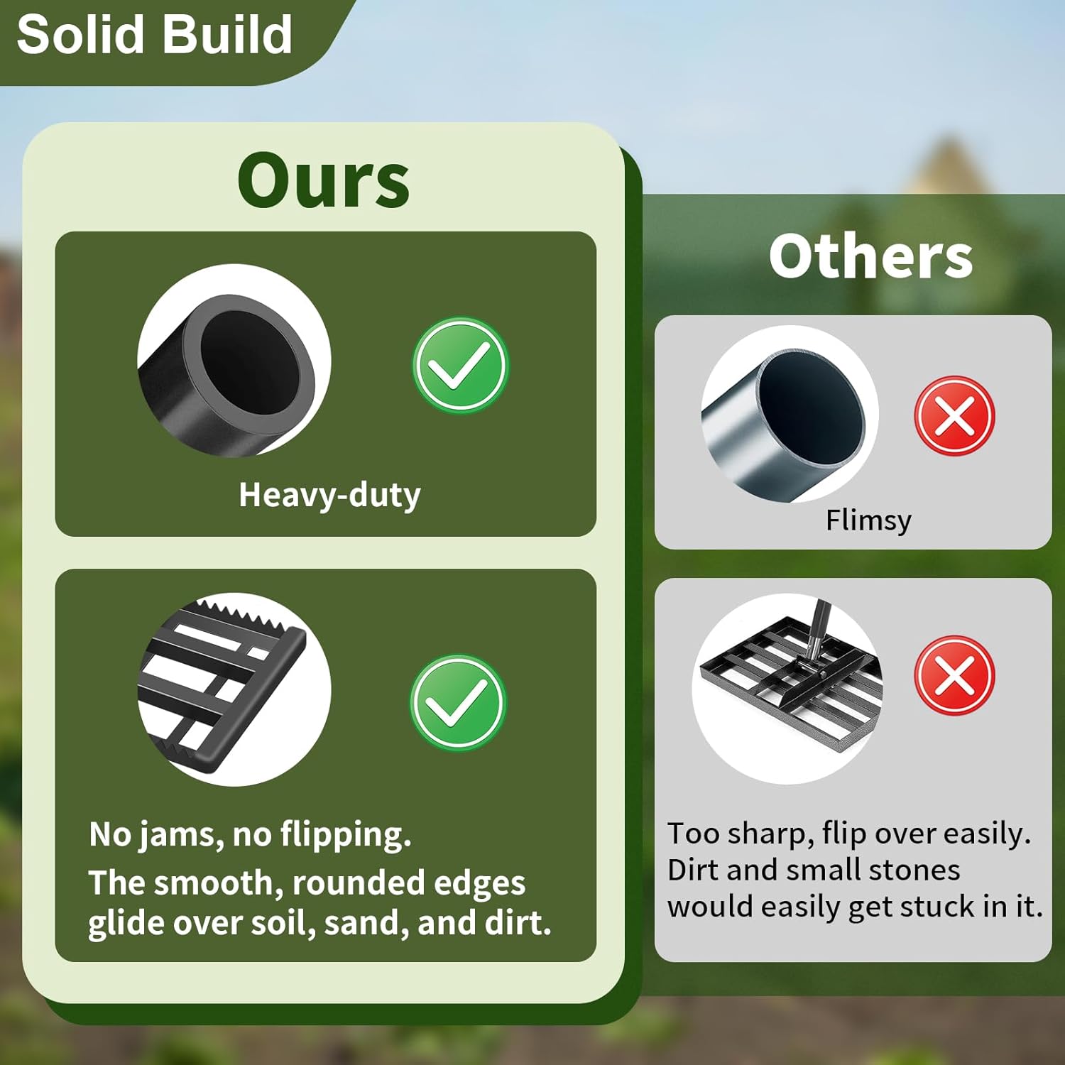 - Smooth & Stable Operation: Designed to prevent flipping and ensure better balance, this yard leveler rake helps you finish leveling jobs faster, smoother, and with less effort.
