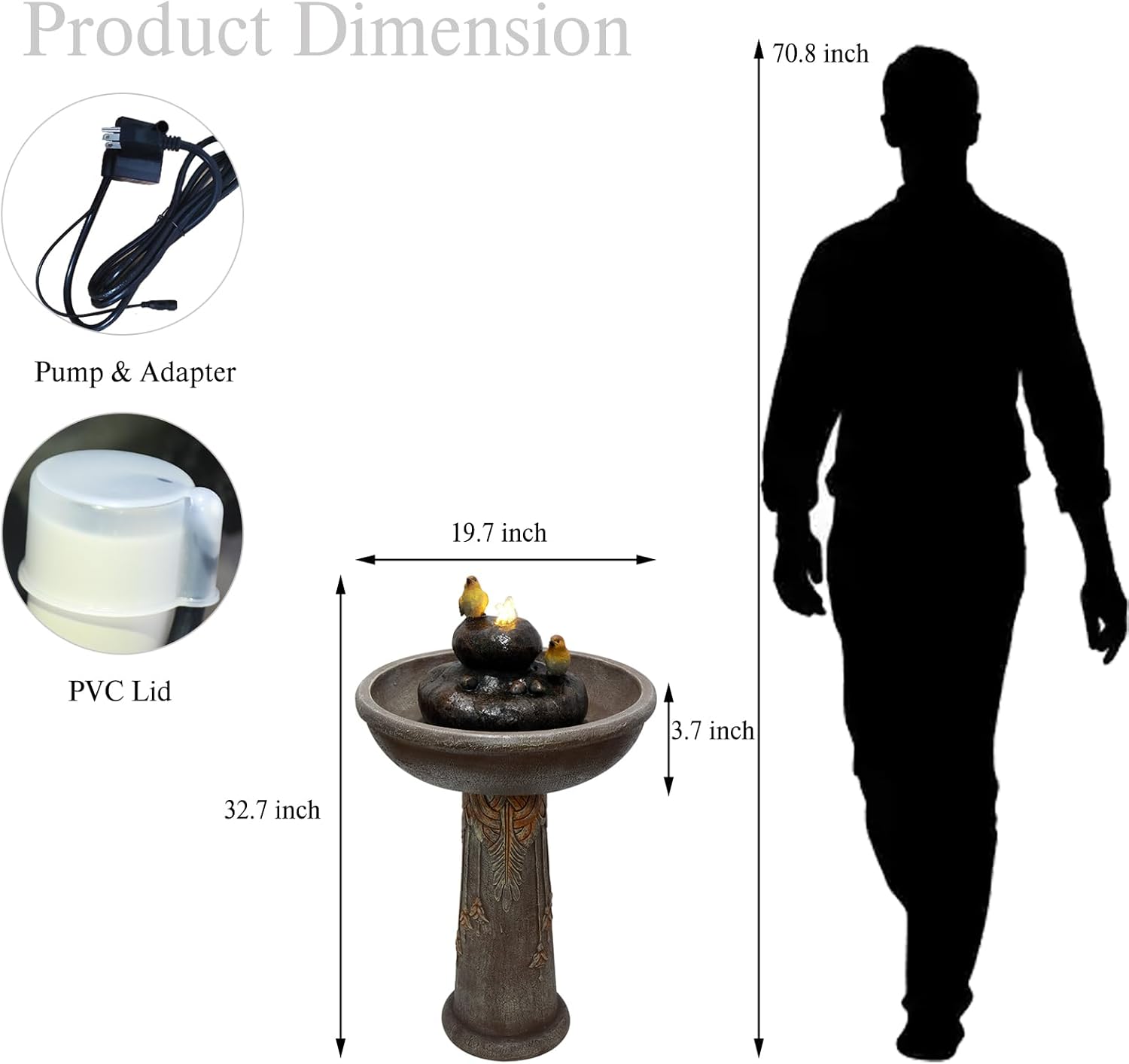 - Special Feature : Decorative Birds, Lighted, Stone-look Finish, Water Circulation, Weather Resistant