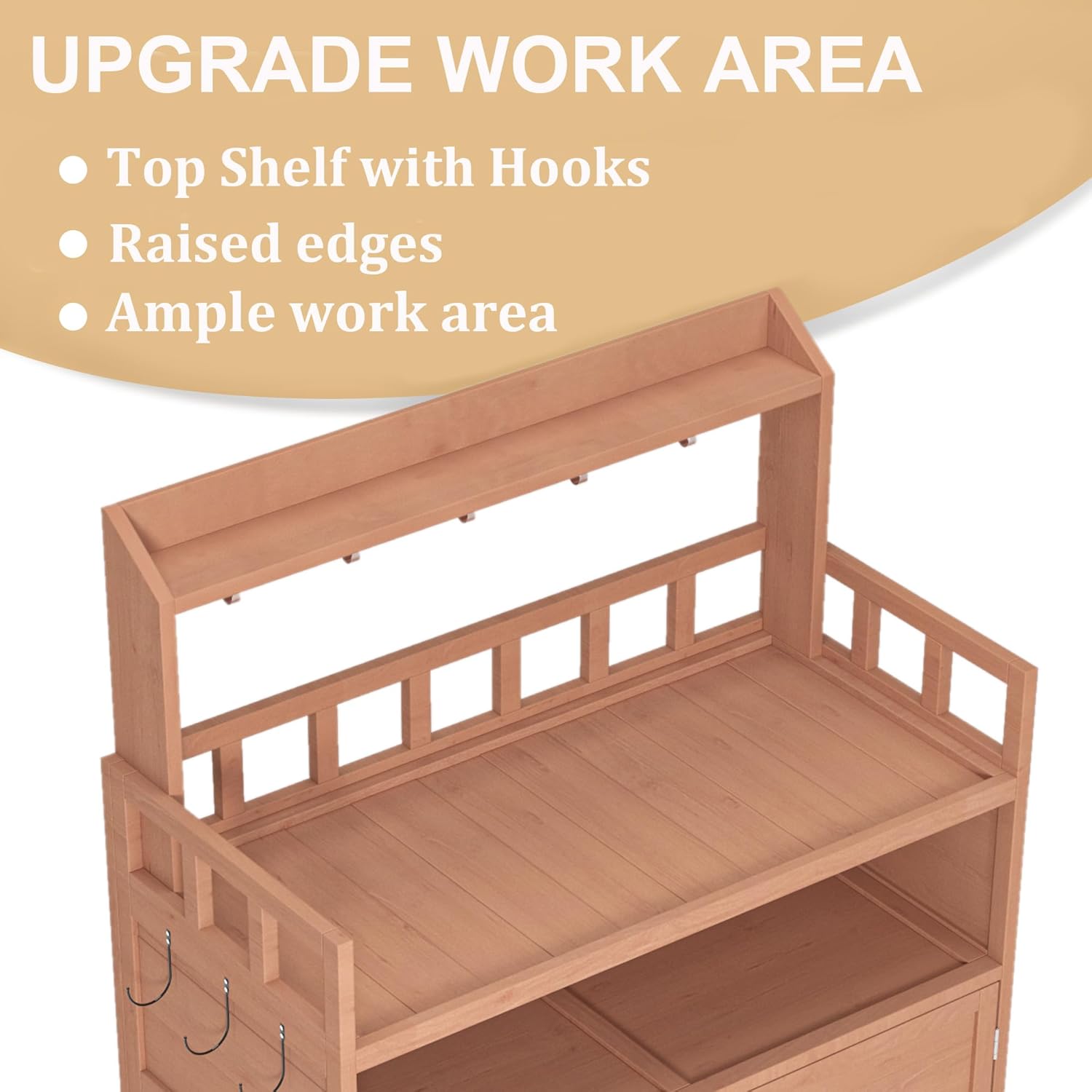 Outdoor Brown Wood Potting Bench - Spacious Gardening Table with Storage Cabinet & Top Shelf - Ideal for Planting and Organizing Your Garden!