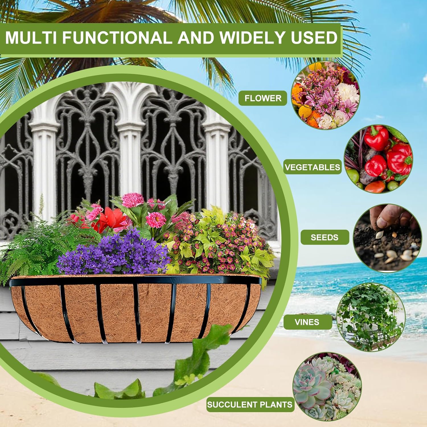 - Easy Maintenance and Versatile Use: The flexible semi-moon shape of our coconut hanging basket liners makes them easy to cut and fit into various planter sizes. Simply soak, shape, and fill with soil for effortless planting. Perfect for flower arrangements, indoor and outdoor decor, weddings, and landscaping.