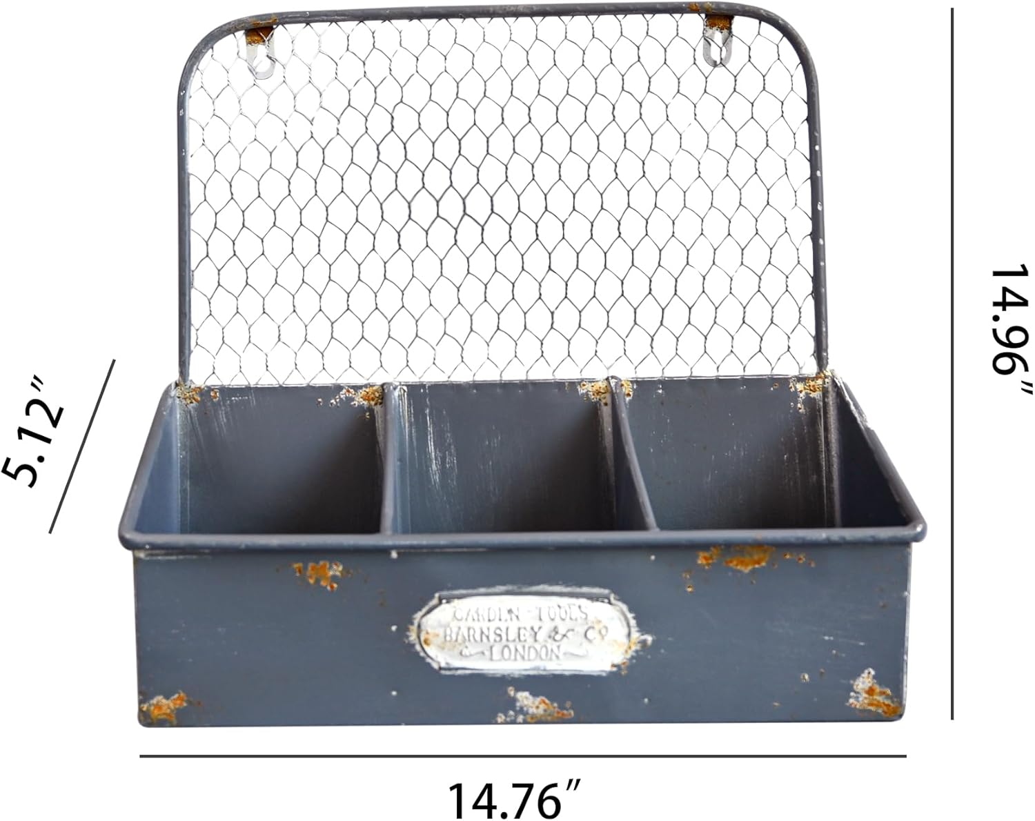 - ăCHARMING VINTAGE DESIGNăShowcases a distressed gray metal exterior with purposeful rust - like patches and a classic "Garden Tools" - inspired plaque. The chicken wire back panel adds a touch of rustic authenticity, making it a standout decorative piece for any garden, patio, or indoor space.