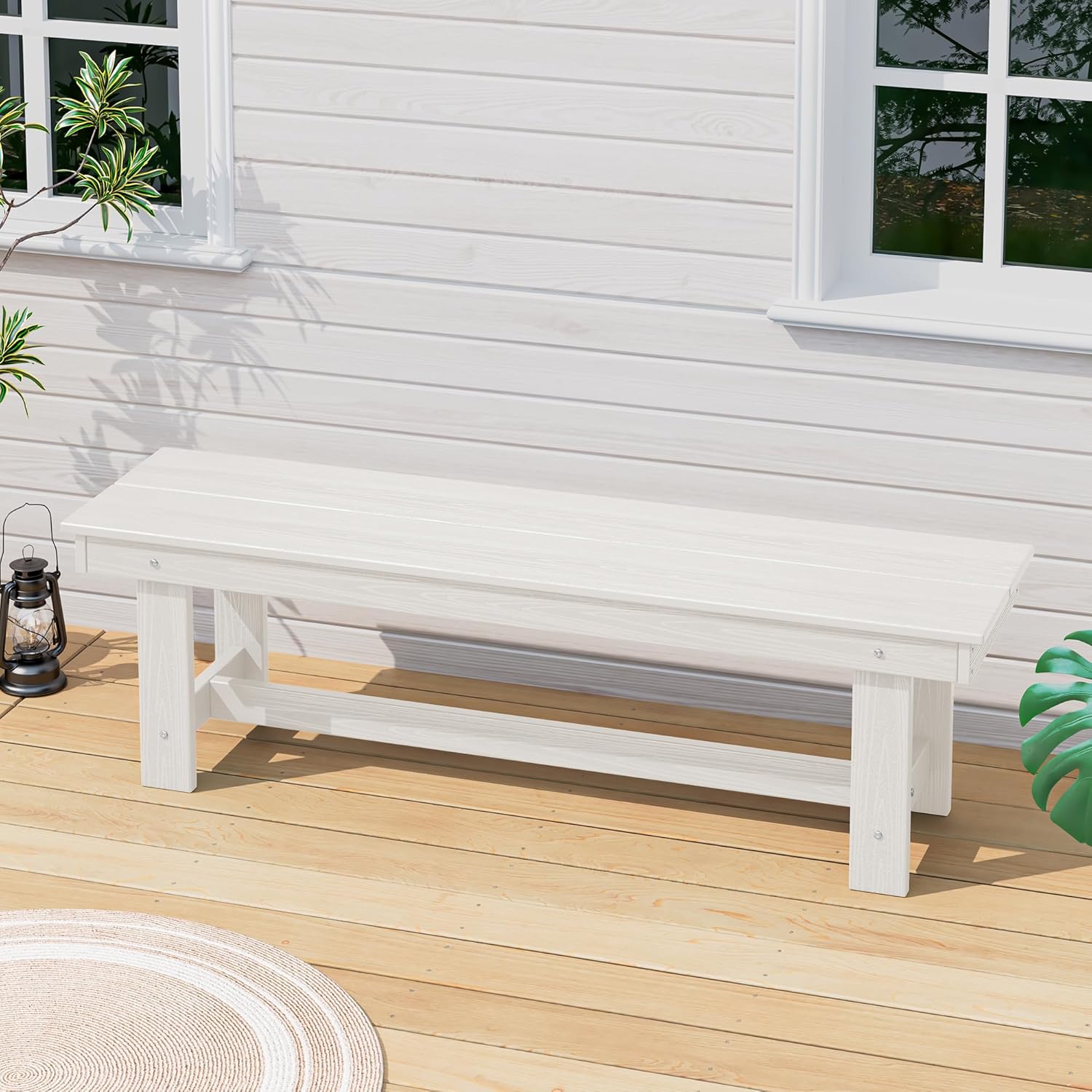 SERWALL 2-Person Outdoor Bench Backless, HDPE Outdoor Benches Weatherproof, 700 Lbs Weight Capacity, Poly Lumber Patio Furniture for Garden, Porch and Park, White, 2 Pack