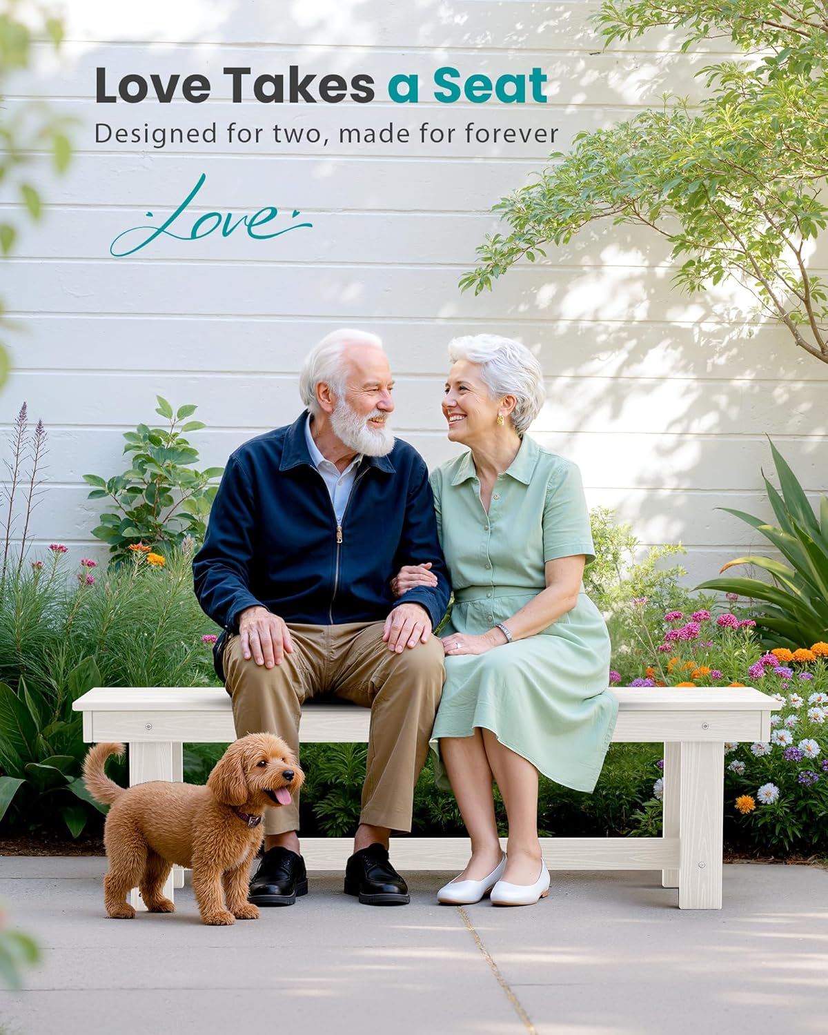 - Never Fade: The color of this outdoor long bench is intrinsic to its HDPE material, with no paint used. This means it contains no harmful substances like methane and will never fade, rot, or crack. Its high weather resistance ensures it remains a long-lasting addition to your garden for years to come.