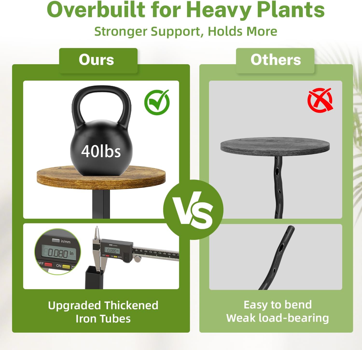 - Strong Load-Bearing & Steady Support: This heavy-duty plant stand indoor is built with reinforced thickened iron pipes, offering exceptional weight capacity and secure support. Keeps plants steady without wobbling or tipping, even with heavy pots