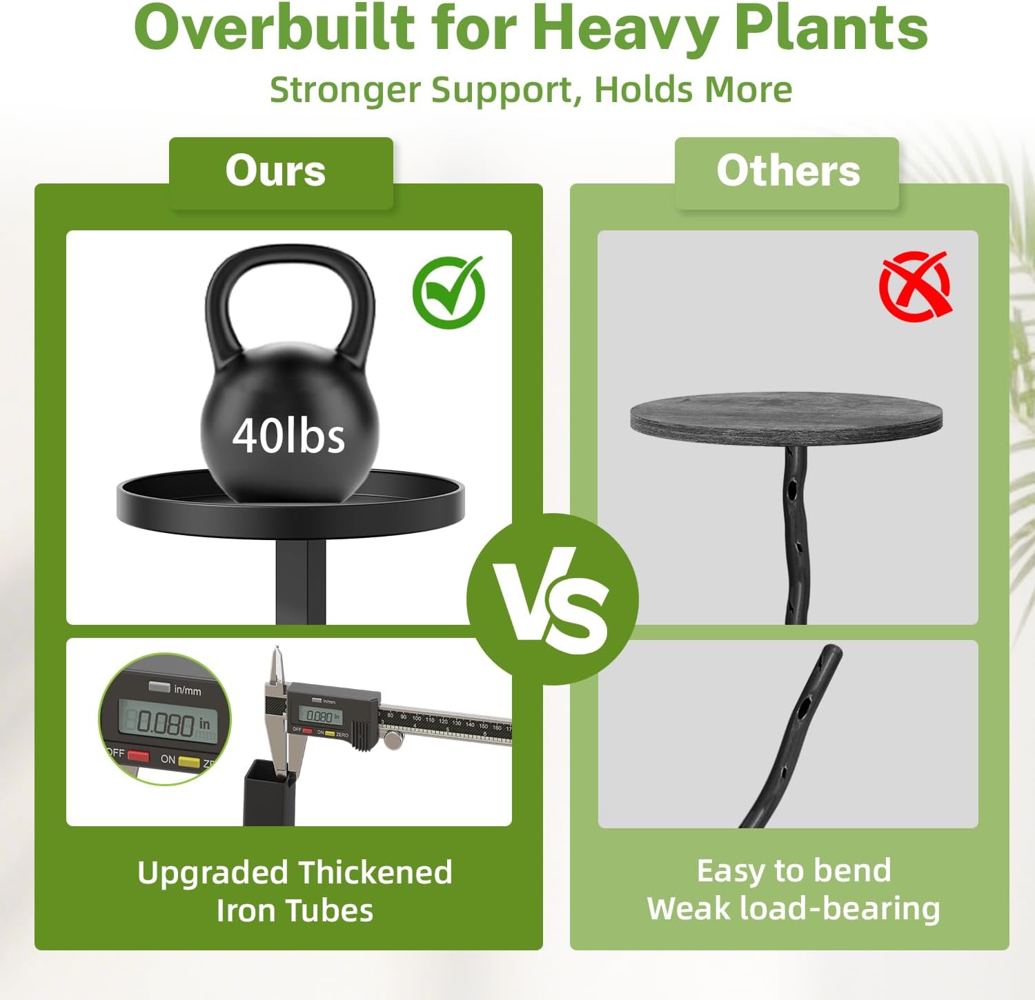 - Strong Load-Bearing & Steady Support: This heavy-duty plant stand indoor is built with reinforced thickened iron pipes, offering exceptional weight capacity and secure support. Keeps plants steady without wobbling or tipping, even with heavy pots