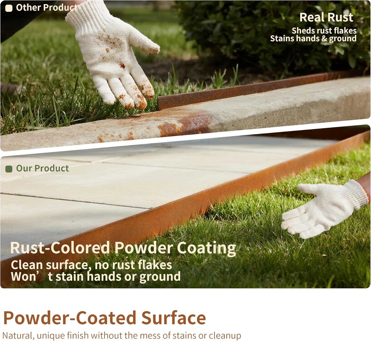 - Rust-Colored Powder Coating โ Rust-Colored powder coating offers the charm of natural rust without shedding particles or staining the ground.