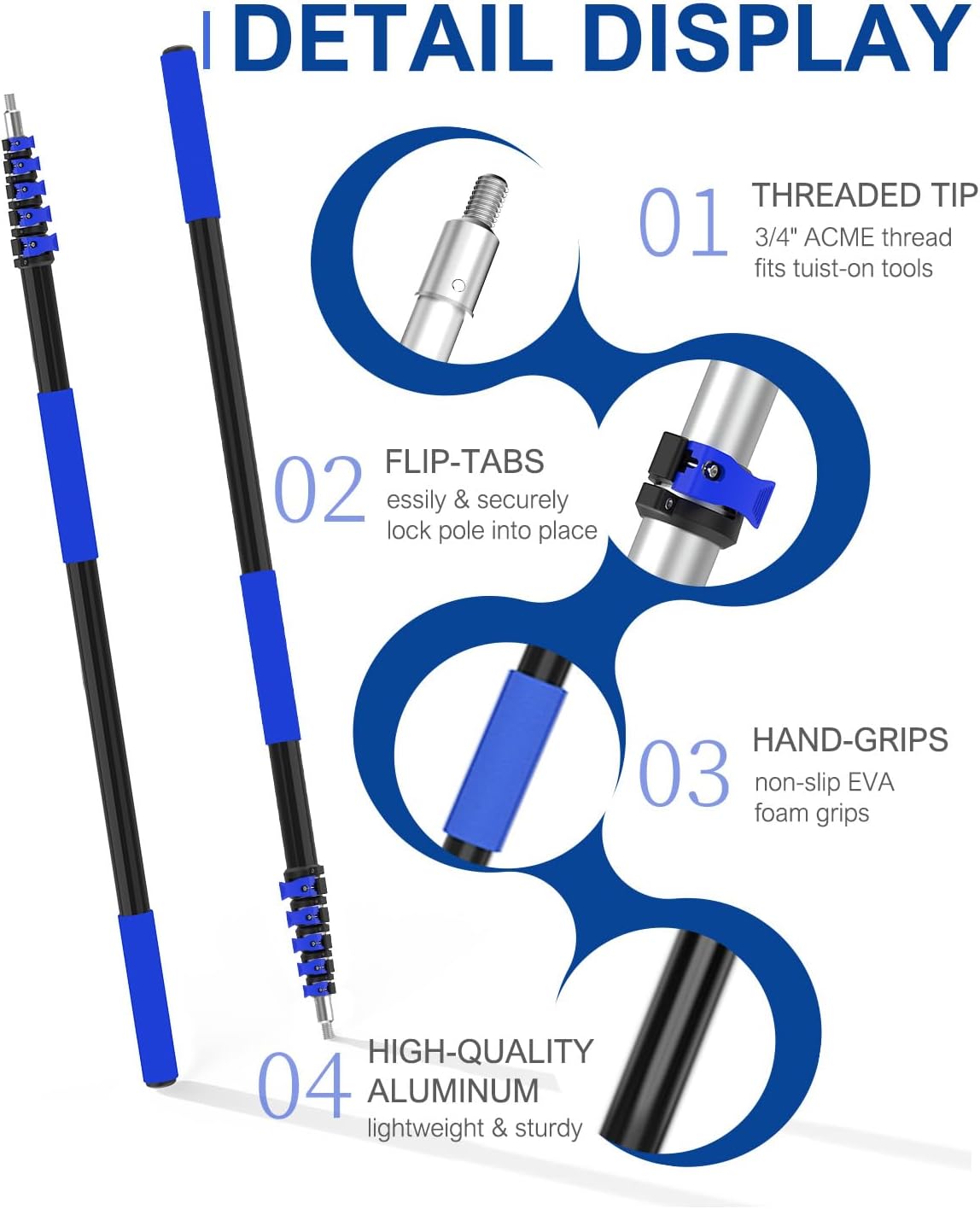 - Reach High Up to 30 Foot - SKGPOLE 5-24ft fruit picker telescopic extension pole with 3/4" American standard thread, can reach a length of up to 30 foot when fully extended. The 4 flap locks on the extension pole are used to freely adjust to any length and height you want and lock it in place. You can pick fruits from tall trees safer and more efficiently.