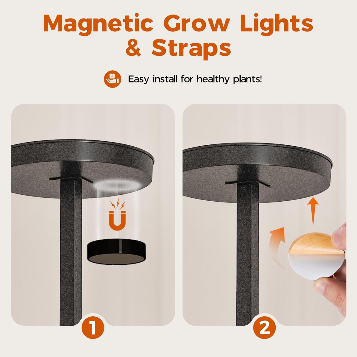- Optimal Growth Lighting: plant stand indoor with grow lights delivers full spectrum illumination; two magnetic circular lamps automatically provide 16 hours of daily light for photosynthesis
