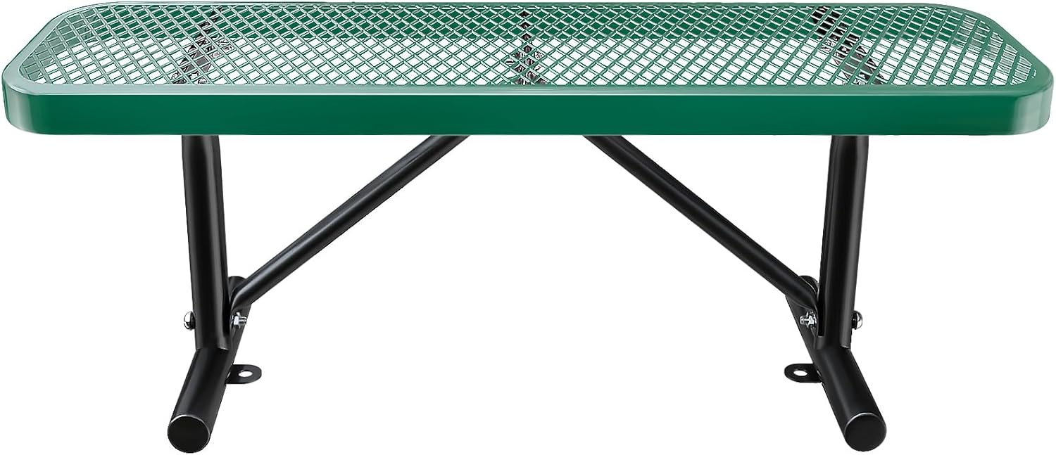 Thermoplastic Coated Iron Park Bench for Outside, Heavy Duty Metal Garden Bench, Expanded Commercial Grade Seating for Shopping Malls, Lawn Yard Porch Entryway (Green without Backrest, 48IN)