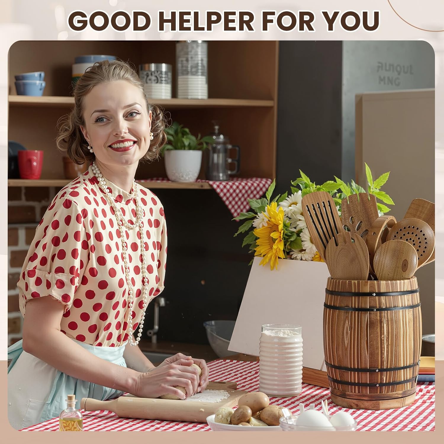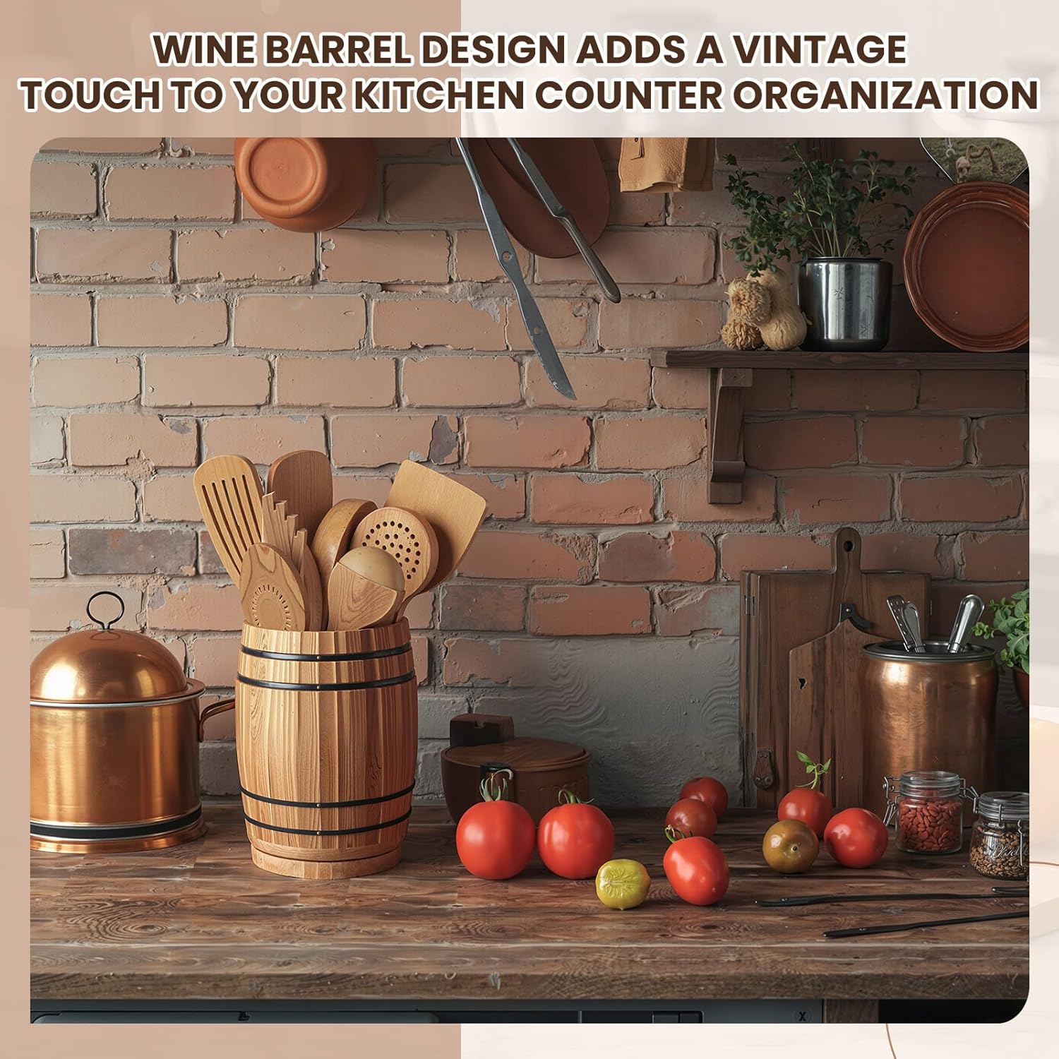 - Elegant Barrel Shape: made of solid wood, this kitchen tool holder cleverly blends natural elements with the countertop, adding a touch of warmth to your kitchen; The barrel shape adds a touch of rustic and sophisticated to your kitchen
