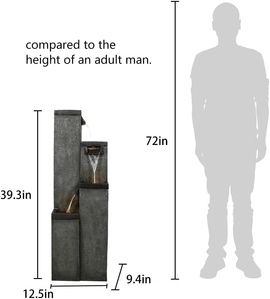 SunJet 4-Tier Modern Water Fountain, Indoor/Outdoor Resin Water Fountains with Soothing Water Sounds, Perfect for Garden, Patio, Home & Office, 12.5" L x 9.4" W x 39.3" H