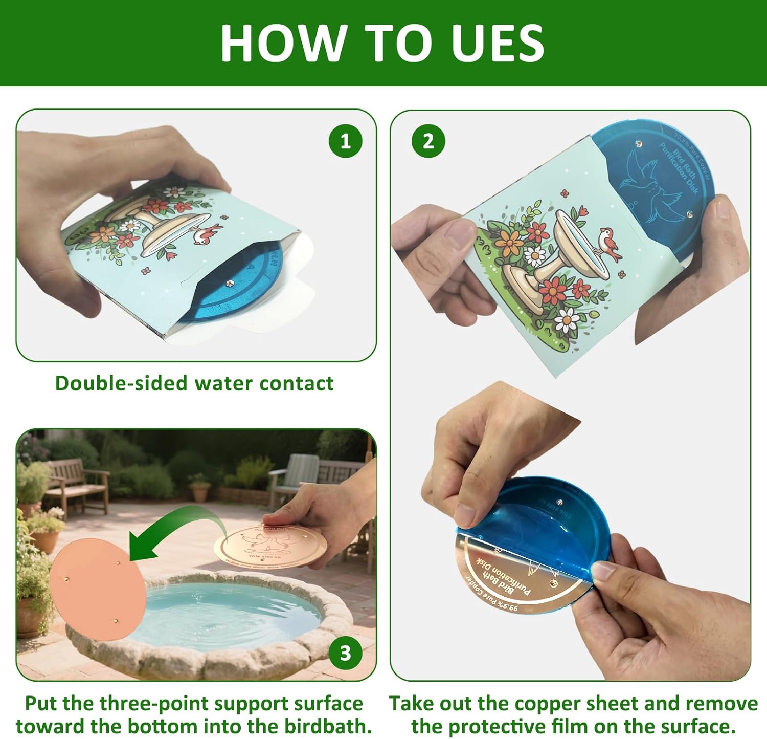 - 【Triple-Point Support, Maximize Efficiency】Designed with a triple-point support structure, the disk maximizes surface contact with water to enhance ion release. It fits most bird baths seamlessly—just place it in, no installation needed, and starts working instantly for optimal purification
