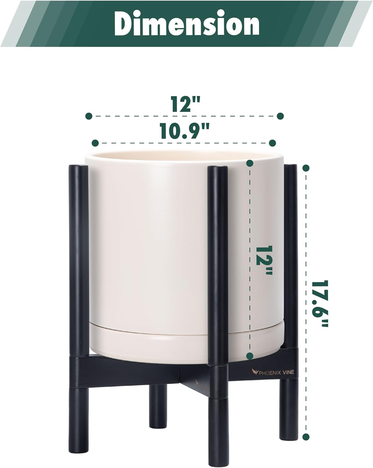 - 12 Inch Pot with Stand Set: Planter size: 12"Diameter x 12"H; pot with stand total height: 17.6 inch.