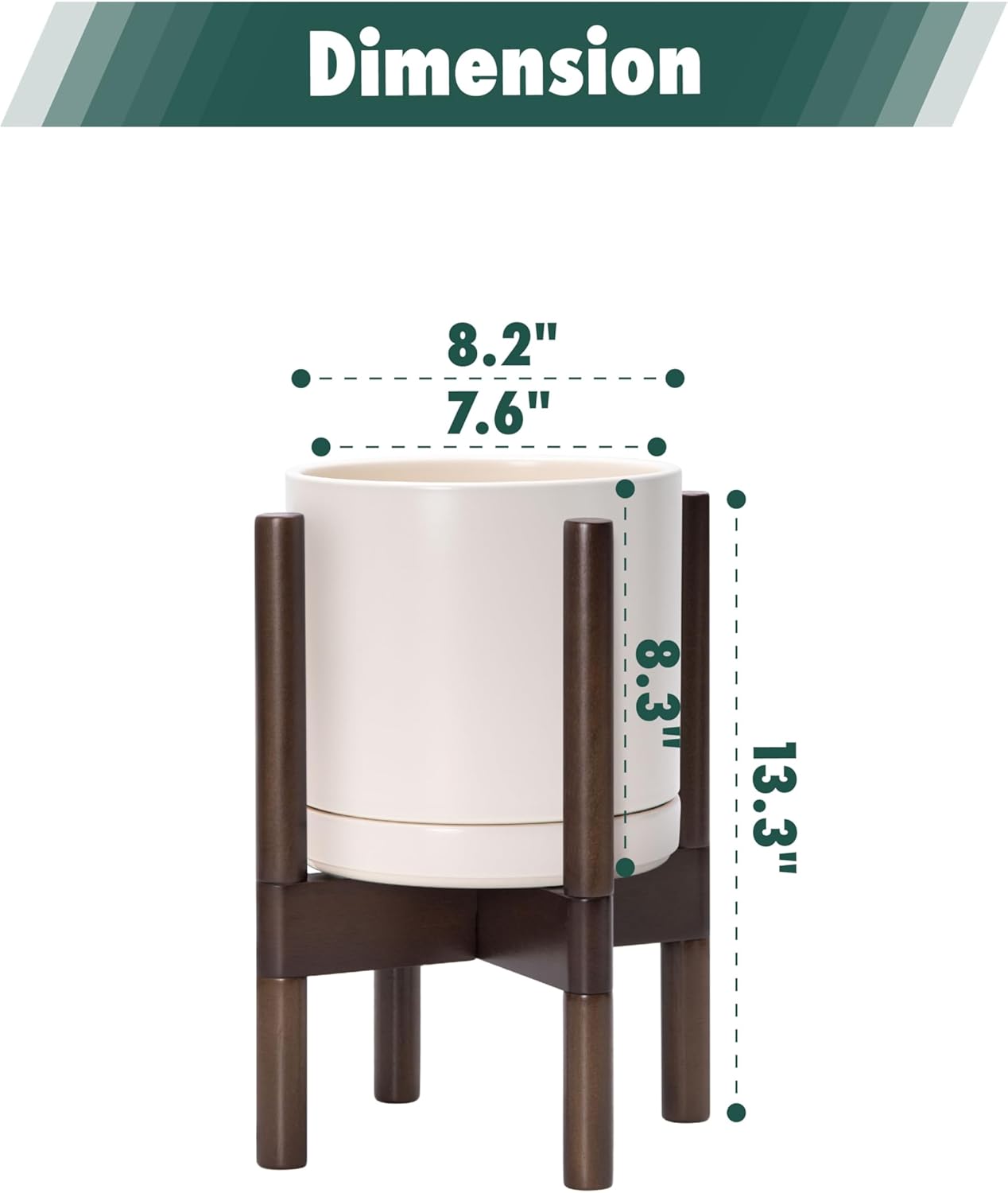 - A Complete Set: Mid-century ceramic planter, combined with a natural color, sculptural, solid wood stand that match perfectly together and looks great in anywhere.