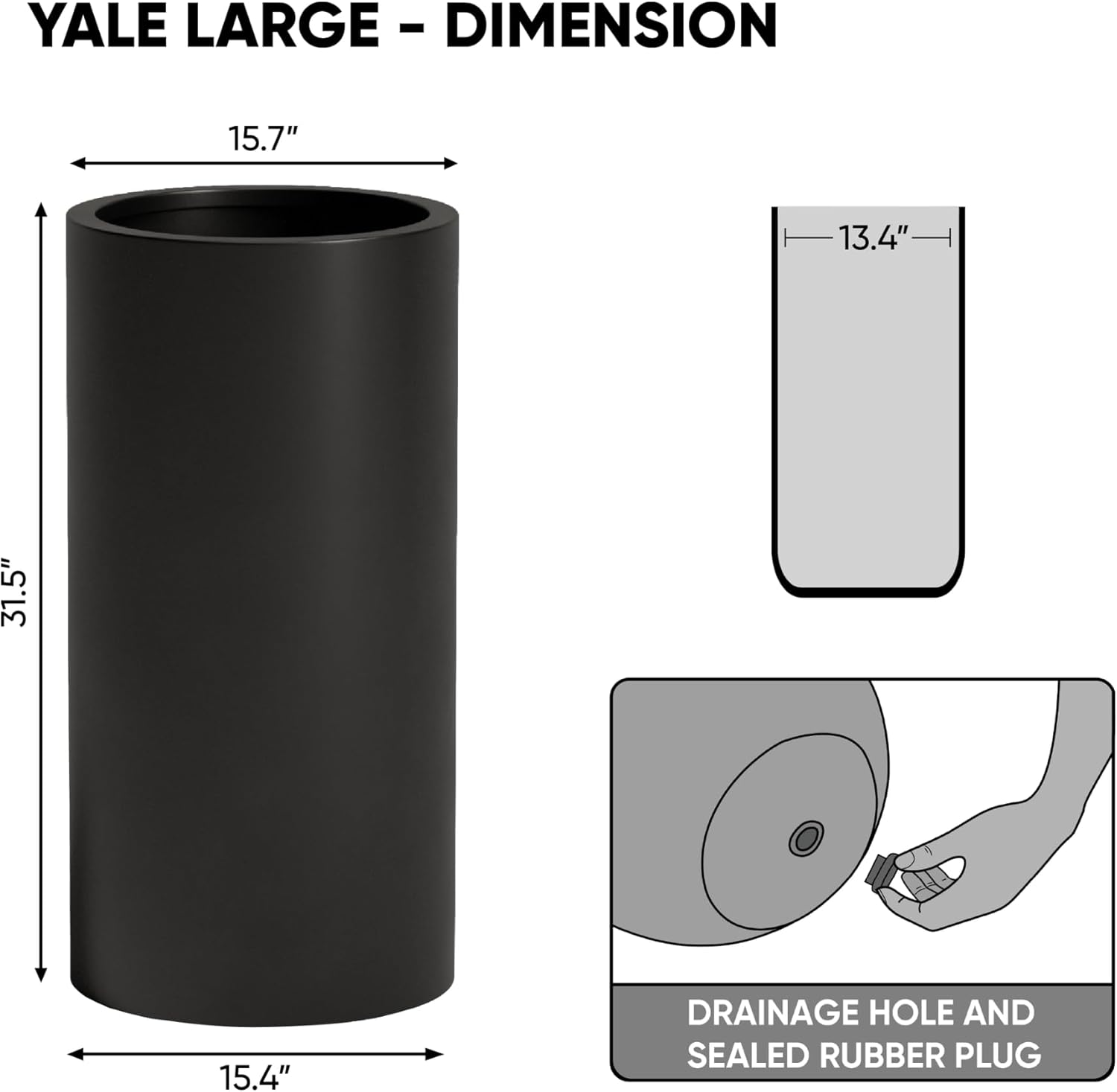 DTY Signature Mount Oxford Tall Outdoor Planter - Large Black 31.5 Inch Height Modern Tall Planter Pot for Indoor & Outdoor Spaces - Stylish Planter for Contemporary Homes and Gardens